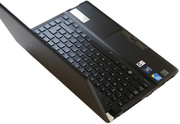 Klawiatura jest wyspowa z nakładką zabezpieczającą przed dostawaniem się zanieczyszczeń pod klawisze. Niestety, płytki są płaskie i maja śliską, gładką powierzchnię. Tym samym nie zapewniają one odpowiedniej przyczepności, źle nawiązuje się z nimi kontakt dotykowy i szybko zaczyna się mieć ich dość. Na dodatek klawisze mają krótki skok, który jest źle amortyzowany (nie ma na to miejsca). Twardy stop, którym kończy się skok, źle wpływa na stawy, co można boleśnie odczuć po kilkugodzinnej sesji z tym laptopem. Jeżeli dodać do tego, że klawisze wchodzą nazbyt lekko i trudno dobrać właściwą siłę nacisku, to wychodzi na to, że pisze się bardzo niewygodnie, niepłynnie i popełnia przy tym wiele błędów pisarskich.