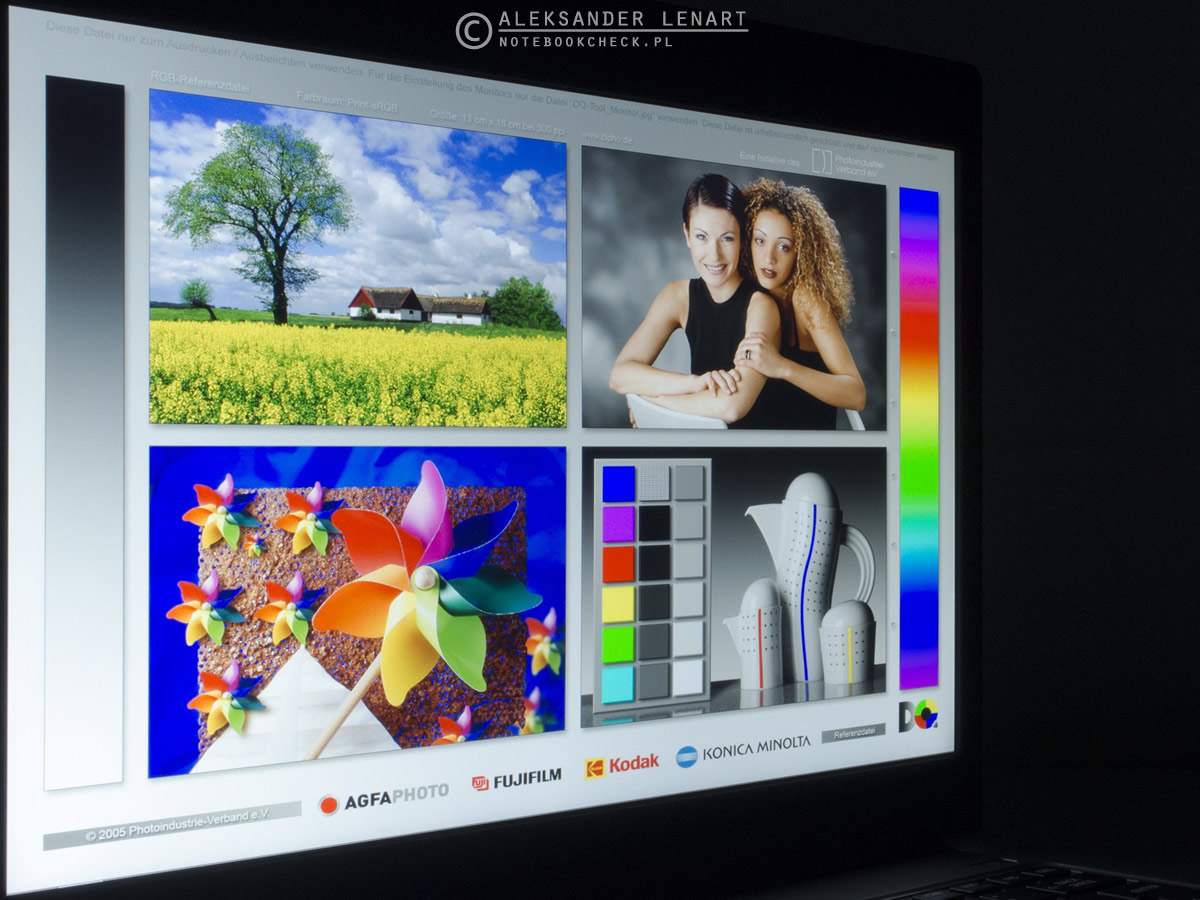 Wyśmienicie prezentuje się także paleta barw. Okazała się ona nieco obszerniejsza od referencyjnej przestrzeni sRGB. Dzięki tak szerokiemu spektrum barw Toshiba Portégé Z30-C-125 może zyskać uznanie pracującego na laptopie grafika. Warto także pochwalić antyodblaskową powierzchnię ekranu usprawniającą pracę w niedogodnych warunkach oświetleniowych oraz szerokie kąty widzenia (omawiany laptop otrzymał matrycę IPS).