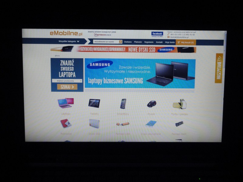 Na chwilę warto zatrzymać się przy matrycy Samsunga, która w stopniu wystarczającym odwzorowuje przestrzeń sRGB oraz cechuje się optymalną jasnością obrazu. Z drugiej strony ekran razi wąskim zakresem użytecznych kątów widzenia w pionie oraz przejawiającą się delikatną ziarnistością obrazu.