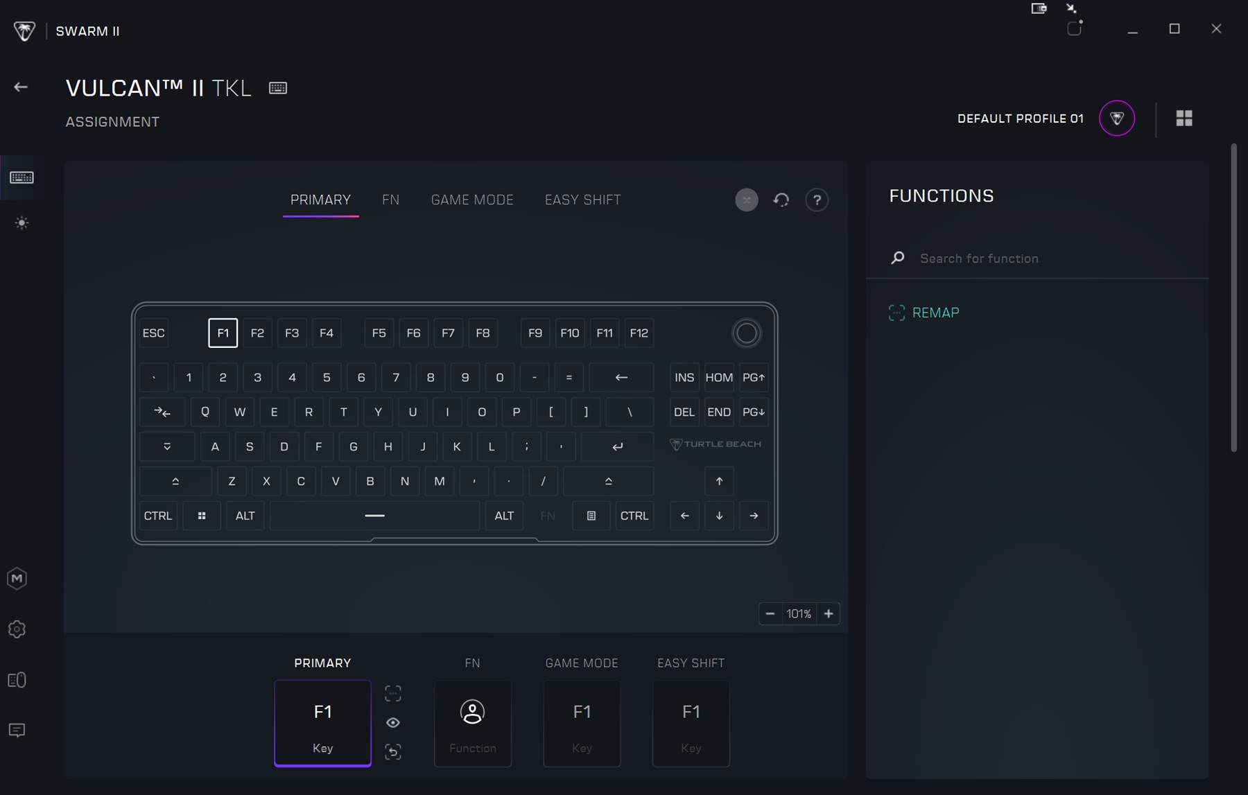 Swarm II jest odświeżająco lekki w porównaniu do bardziej złożonych systemów, takich jak Razer Synapse. Zmiana zakładek nigdy się nie opóźniała, a usprawniony interfejs użytkownika nie jest mylący. Większość funkcji Vulcan II TKL jest dostosowana w menu przypisywania klawiszy i oświetlenia AIMO.