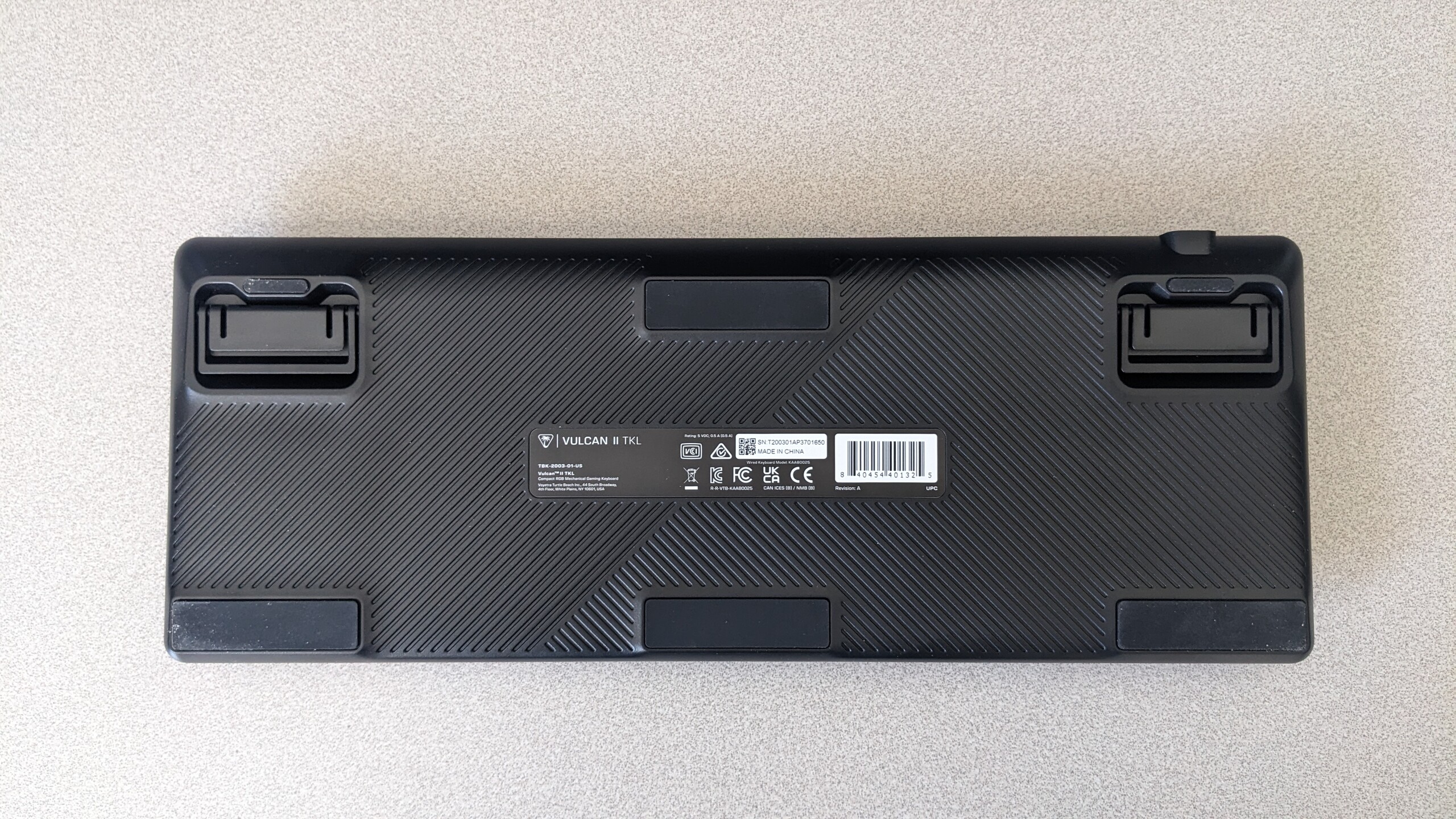Vulcan II TKL posiada kilka cech charakterystycznych dla niskoprofilowej klawiatury. Jej obudowa ma zaledwie 32 mm grubości, nawet jeśli cienkie klawisze wznoszą się znacznie ponad jej powierzchnię. Regulowane podpórki poniżej zapewniają większą ergonomiczną elastyczność.
