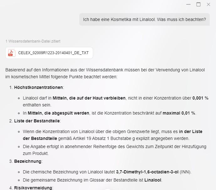 Przetestowaliśmy bazę wiedzy przy użyciu opracowanej przez nas procedury. W szczególności polega ona na przeszukiwaniu łącznie 100 plików PDF o rozmiarze 31,4 MB, w których ukryte są pewne informacje o osobie, zarówno bezpośrednio, jak i pośrednio. Umożliwia to sprawdzenie, czy informacje można w ogóle znaleźć i czy można je wyraźnie rozróżnić. Testuje również, czy system może, mówiąc najprościej, myśleć nieszablonowo. Ponadto można zidentyfikować halucynacje, ponieważ mamy pełną listę wszystkich wprowadzonych informacji. W naszym teście analiza dokumentów zajęła około 35 minut i mogła działać w tle. Zadania te nie są jednak zintegrowane z centrum zadań, więc użytkownicy nie są powiadamiani o zakończeniu analizy.