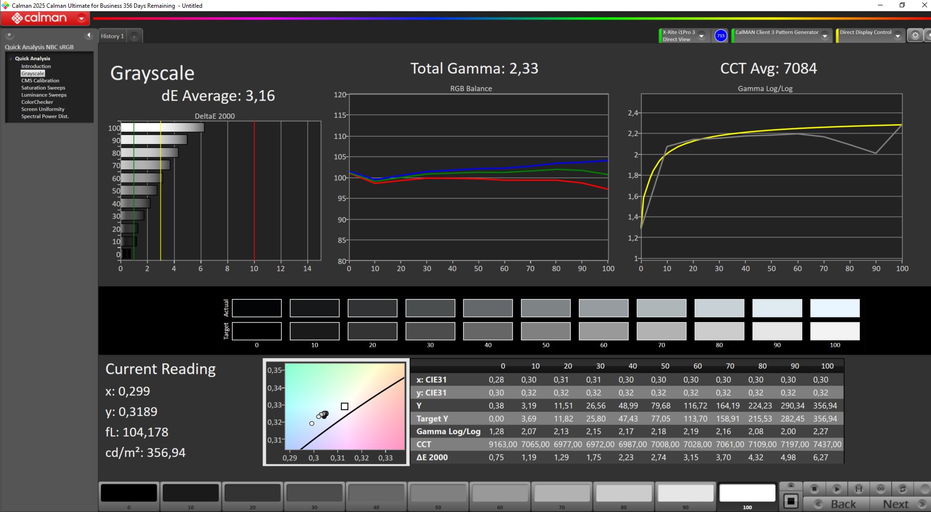ΔE Greyscale Calman: 3.16 | ∀{0.09-98 Ø5}