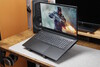 Wybór portów nie obejmuje czytnika kart SD, a także USB4 i Thunderbolt, co oznacza ograniczenie do maksymalnie 10 Gb/s. Pod względem rozmiaru i wagi, laptop plasuje się mniej więcej pośrodku 17-calowego segmentu. Dzięki wyświetlaczowi 16:9 jest on często węższy niż konkurencyjne 17-calowe modele.