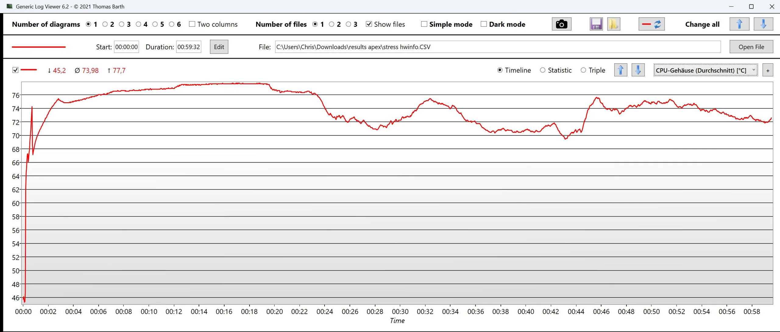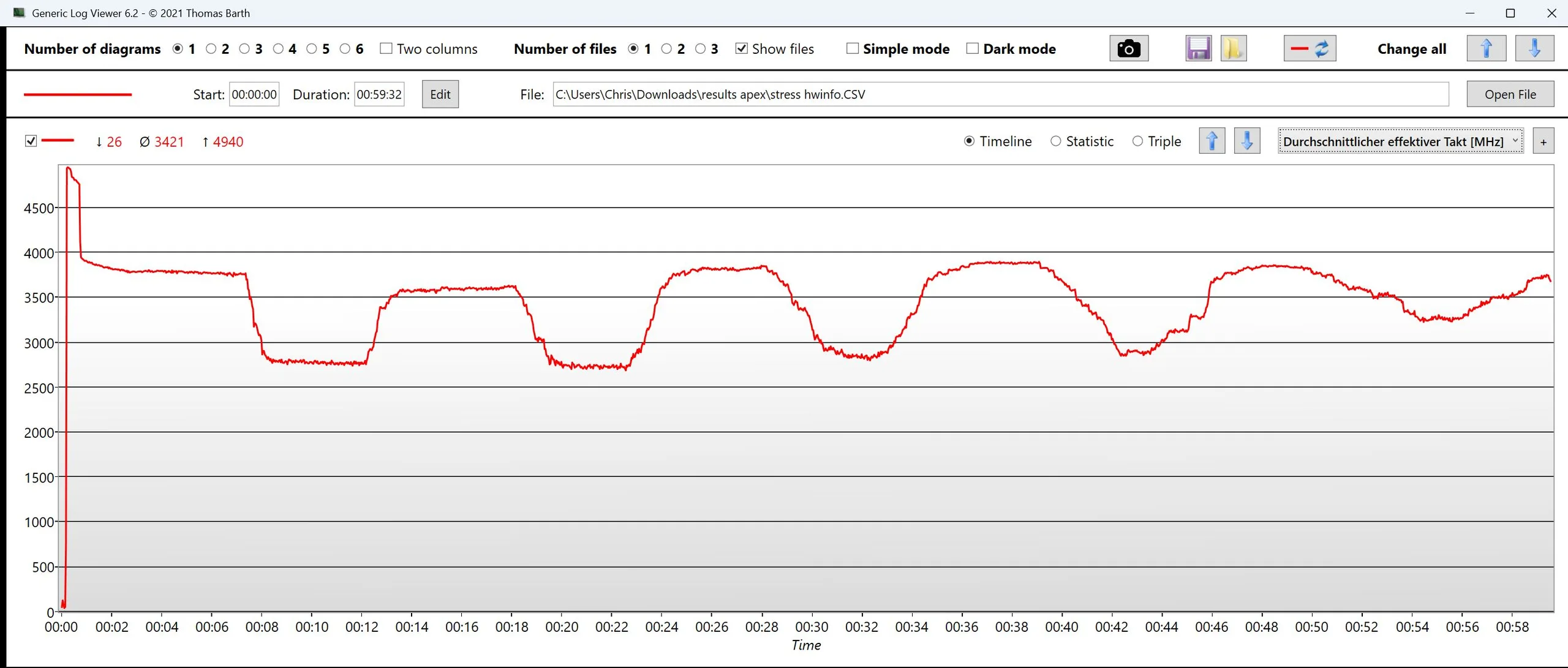 | TaktowanieCPU (GHz) | Taktowanie GPU (MHz) | Średnia temperatura CPU (°C) | Średnia temperatura GPU (°C) | |