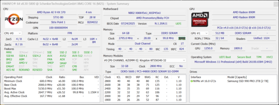 SCHENKER XMG Core 16 M25 AMD Ryzen AI 9 HX 370 ⎘ Nvidia GeForce RTX 5070 Laptop ⎘ 64 GB Pamięć, 2048 GB SSD | Cena katalogowa: 2100€ | 2.1 kg | 23 mm | 16.00" 2560x1600 189 PPI IPS | |