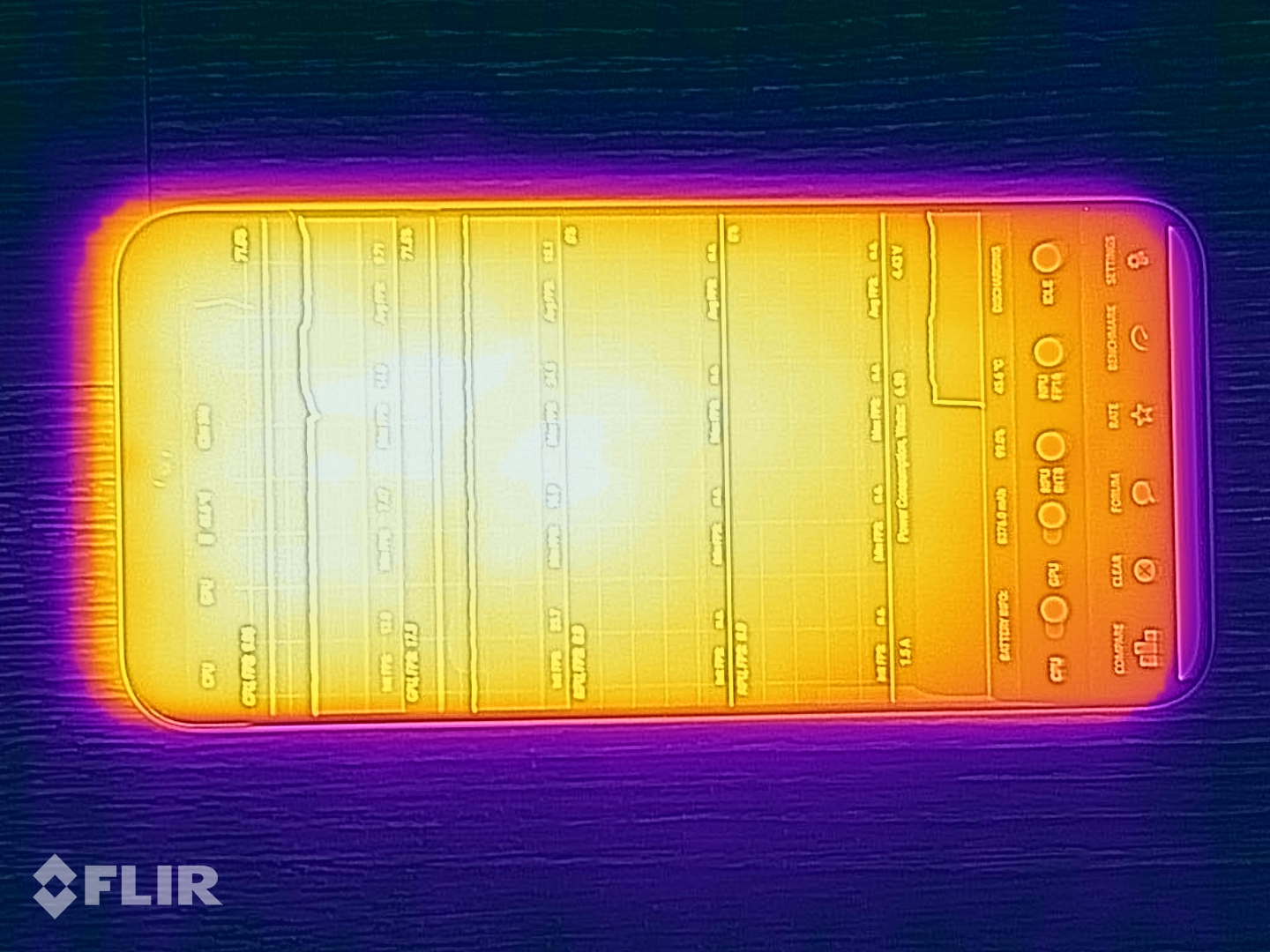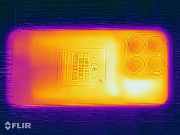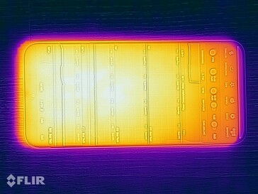 (±) Maksymalna temperatura w górnej części wynosi 42.8 °C / 109 F, w porównaniu do średniej 35.2 °C / 95 F , począwszy od 21.9 do 247 °C dla klasy Smartphone.