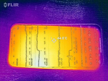 (-) Maksymalna temperatura w górnej części wynosi 50.6 °C / 123 F, w porównaniu do średniej 35.2 °C / 95 F , począwszy od 21.9 do 247 °C dla klasy Smartphone.