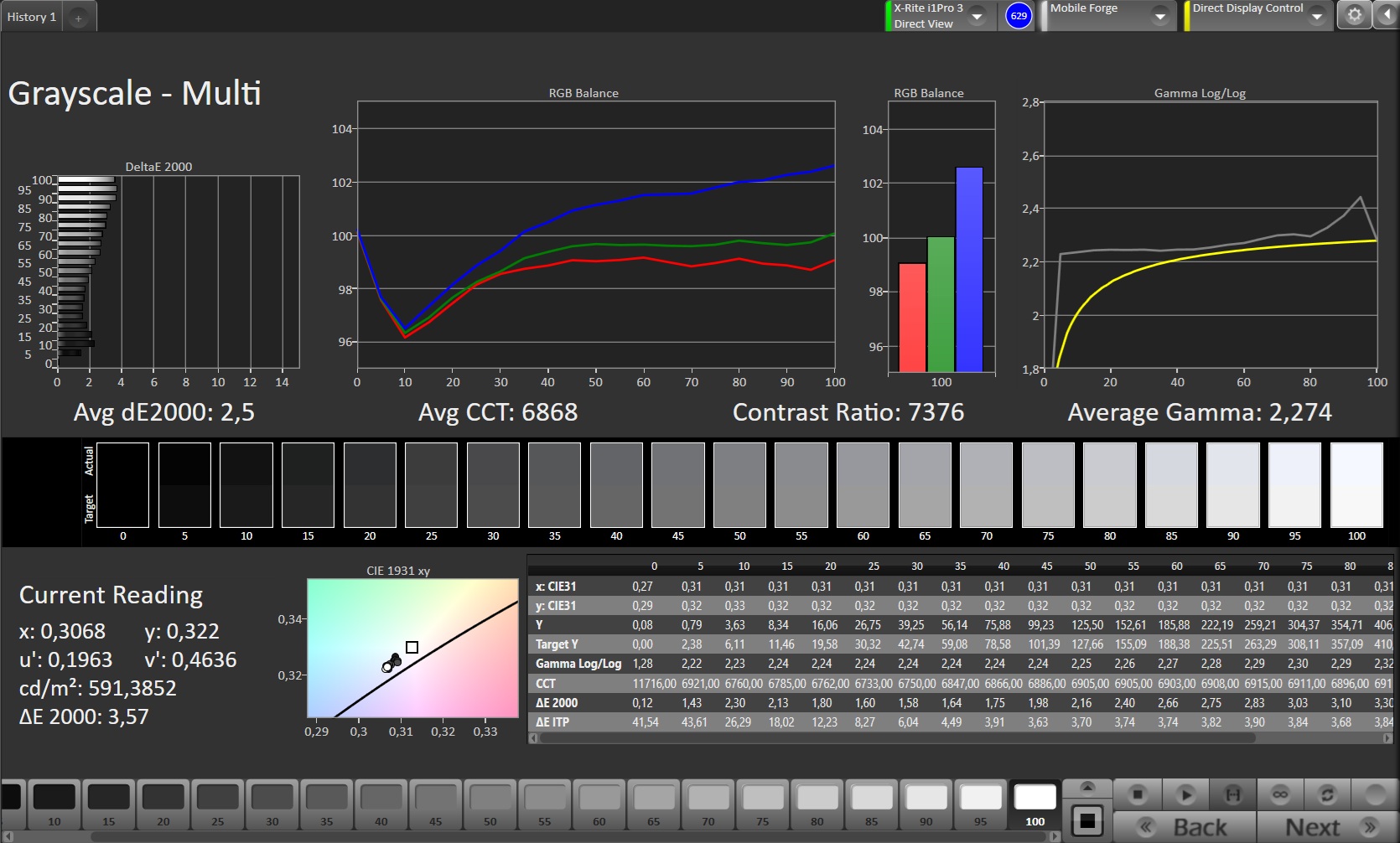 ΔE Greyscale Calman: 2.5 | ∀{0.09-98 Ø5}