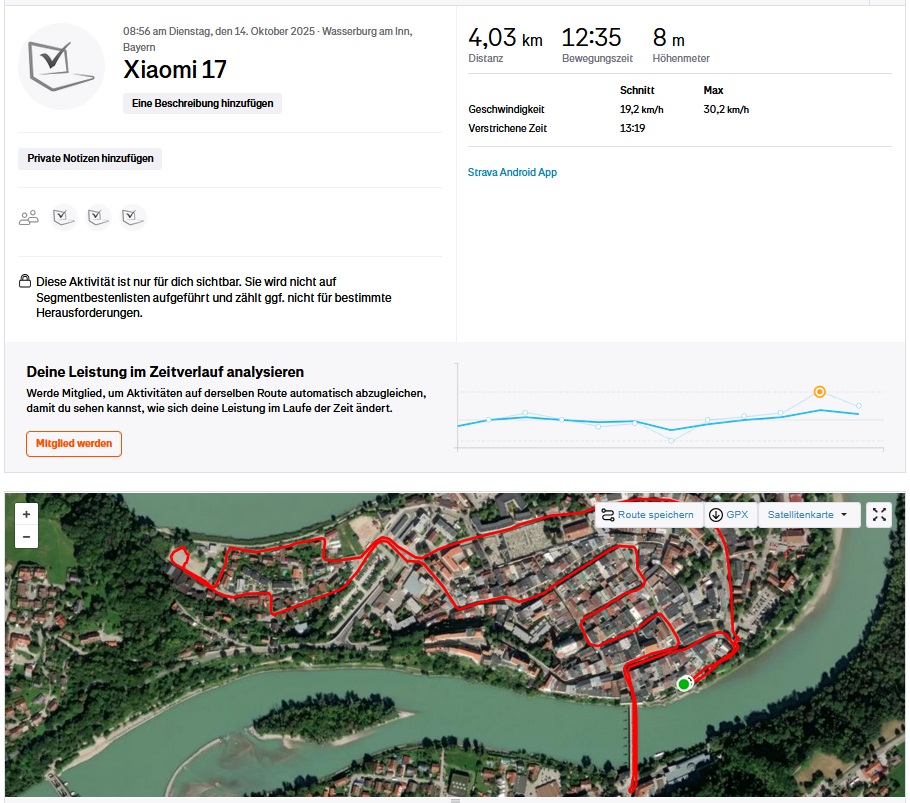 Trasa została dokładnie odtworzona przez Xiaomi 17, a nasze urządzenie porównawcze Garmin Venu 2 zapewniło bardzo podobną trasę.