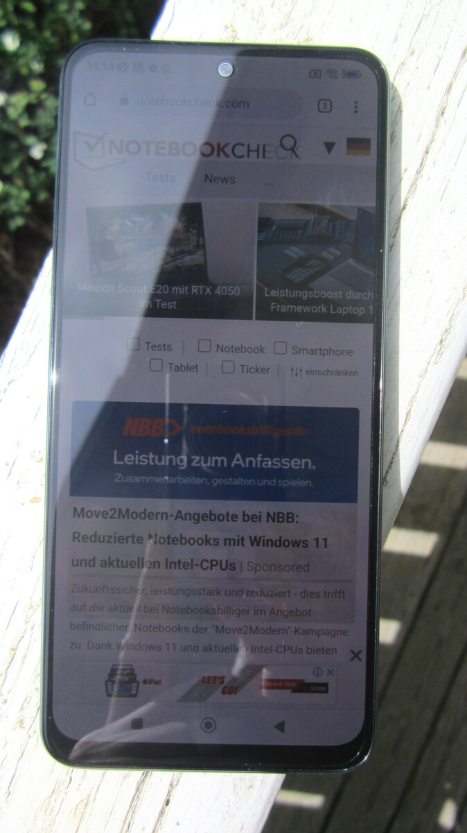 Gdy czujnik jasności jest wyłączony, panel AMOLED w Redmi Note 12 5G świeci z maksymalną jasnością 423 cd/m². Przyciemnia się do 2,45 cd/m² w najniższym ustawieniu jasności.