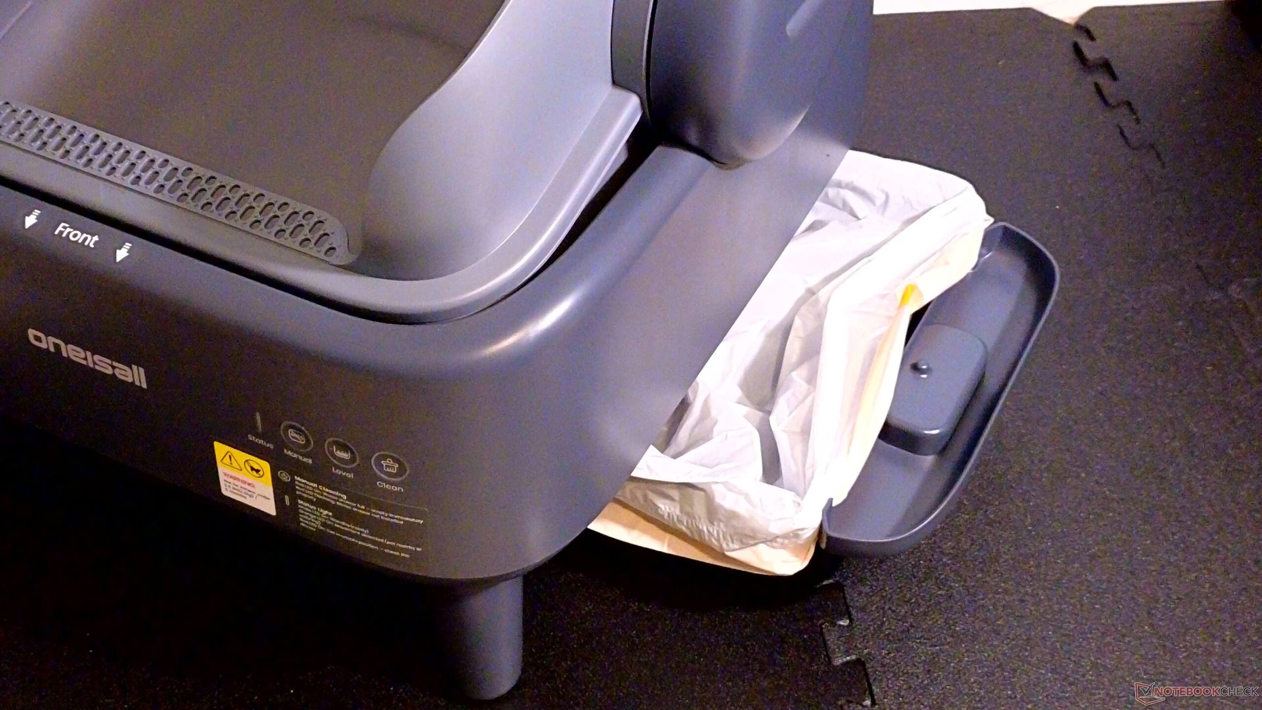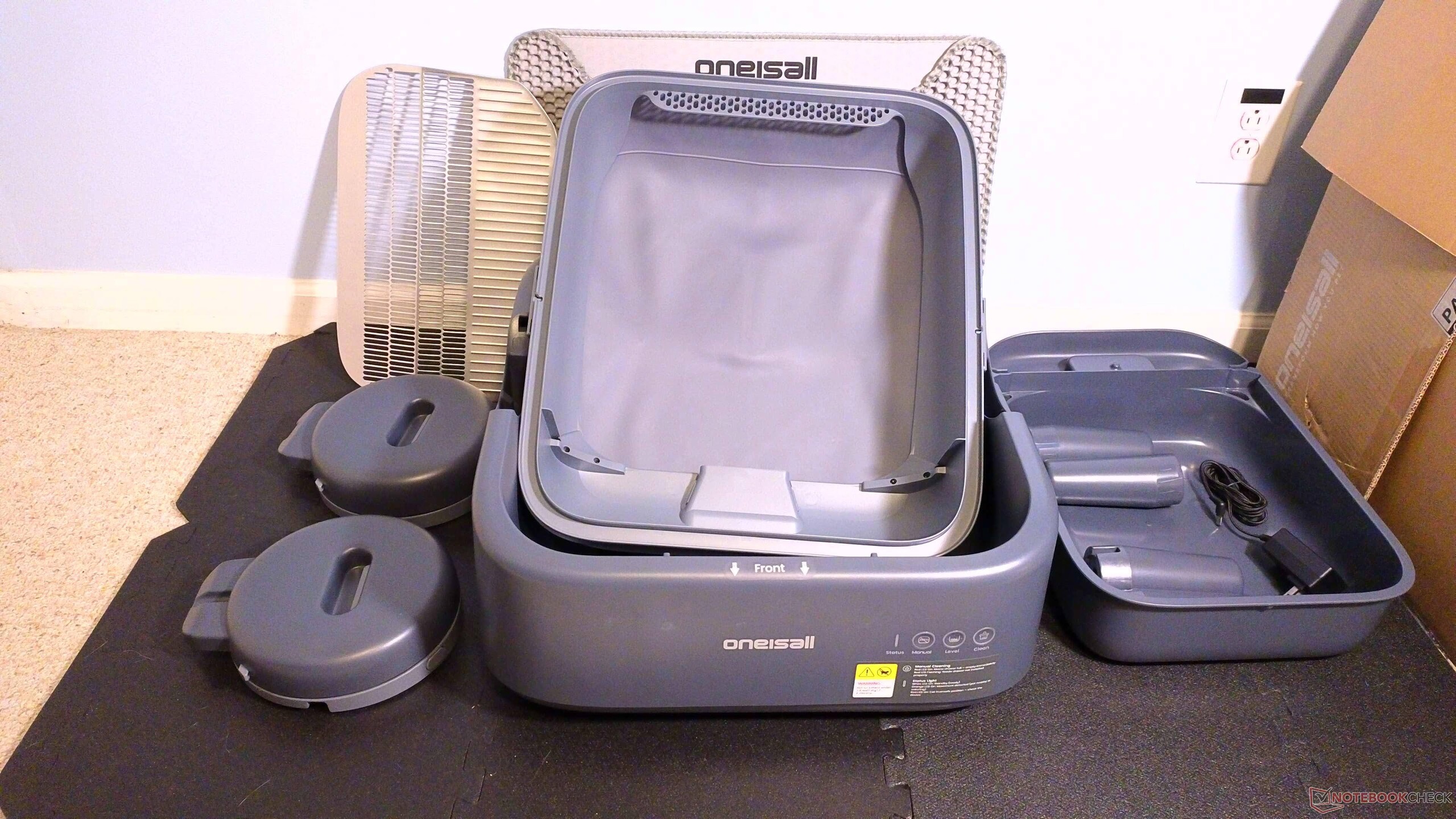 Ease S1 jest starannie zapakowany, a wszystko łatwo się ze sobą łączy; do konfiguracji nie są potrzebne żadne śruby ani narzędzia, co było miłym zaskoczeniem. Dodatkowo, Ease S1 został dostarczony z matą wyłapującą śmieci, która działa dobrze i jest łatwa do czyszczenia. Kolejną miłą cechą było to, że tacę na śmieci można było zainstalować z dowolnej strony, co znacznie ułatwiło ustawienie pudełka. Do kuwety dołączono również sporą liczbę jednorazowych worków. Ponieważ jednak worki mają określony rozmiar, interesujące będzie znalezienie zamienników, ponieważ są one obecnie niedostępne na stronie Oneisall.