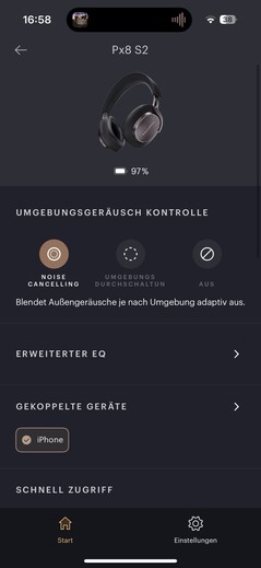Z drugiej strony, aktywna redukcja szumów działa doskonale - przynajmniej w przypadku dźwięków o niskiej częstotliwości. Szum silników samochodowych lub hałas pociągów jest prawie całkowicie tłumiony przy włączonym ANC. Wyższe częstotliwości pozostają jednak w dużej mierze nienaruszone, więc głosy są ledwo zredukowane - podobnie jak w przypadku większości konkurencyjnych modeli. Z drugiej strony, tryb przezroczystości działa imponująco dobrze: dźwięki otoczenia i głosy są wyraźnie słyszalne i brzmią prawie tak naturalnie, jak bez słuchawek.