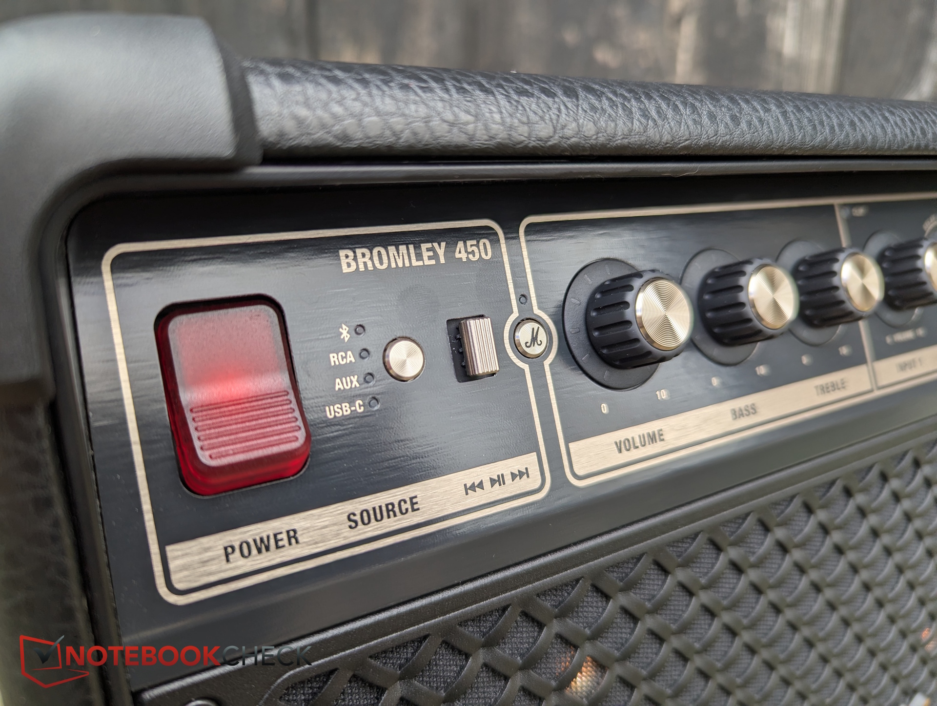 Każdy, kto zna większy model Bromley 750, może zrobić podwójne spojrzenie - 450 wygląda niemal identycznie, tylko w mniejszym rozmiarze. Oznacza to charakterystyczną stylistykę Marshalla zamiast ogólnych, krzykliwych projektów. W praktyce przekłada się to na wysokiej jakości skórę PU pokrywającą powierzchnie, które zwykle są gołym plastikiem, charakterystyczną metalową kratkę z przodu oraz mosiężne przyciski i pokrętła wzdłuż górnego panelu. Jest też konfigurowalny przycisk "M", który można przypisać za pomocą aplikacji.