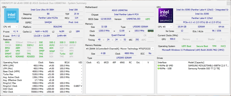 Drugą ważną atrakcją jest oczywiście nowy mobilny procesor Panther Lake od Intela, który nie zawodzi. Oferuje on wielordzeniową wydajność szybszych procesorów Arrow Lake, ale jest znacznie mniej energożerny. Jest to zatem udane połączenie dwóch poprzednich serii, Arrow Lake i Lunar Lake, które współistniały, zaspokajając potrzeby bardzo różnych kategorii użytkowników. Wraz z nową kartą graficzną nastąpił ogromny skok wydajności o około 70%, co jest znaczące. Proszę pamiętać, że szybki iGPU B390 jest ograniczony do wybranych układów Panther Lake. W przypadku ZenBook Duo oznacza to, że trzeba wybrać topową jednostkę SKU w cenie 2599 euro, ponieważ podstawowa za 2299 euro ma znacznie słabszy iGPU.