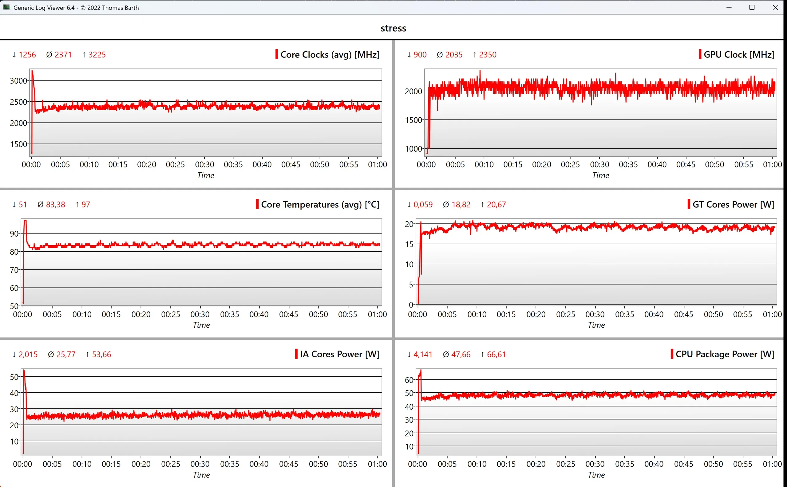 Pod obciążeniem możemy zobaczyć maksymalnie 96 watów, które następnie szybko spadają do 80 watów po około 45 sekundach. Poza UE Zenbook Duo jest dostarczany ze 100-watowym zasilaczem, który wydaje się wystarczająco mocny.