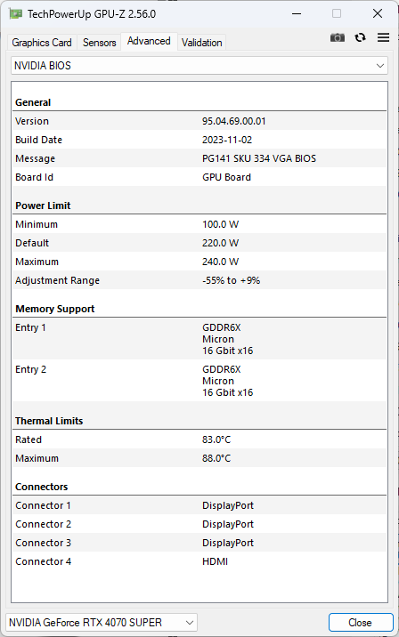 | NVIDIA GeForce RTX 4070 Super Founders Edition (100% PT, Idle: 114.9 W) | |