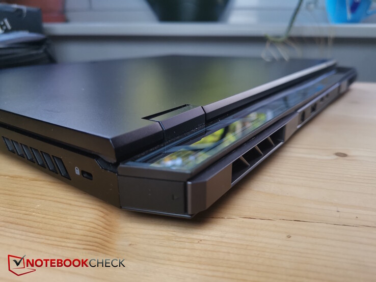 Pokrywa wyświetlacza i podstawa zostały wykonane z aluminium, podczas gdy krawędzie wyświetlacza, tylny moduł chłodzenia i spód laptopa zostały wykonane z tworzywa sztucznego. Metal zapewnia Heliosowi 18 dobrą sztywność i nic nie trzeszczy ani nie pęka pod wpływem naprężeń skrętnych. Łatwo jednak gromadzą się tu odciski palców, a górna część podstawy może być nieco wciśnięta pomimo metalu, nawet podczas pisania na klawiaturze. Pozostaje to jednak w granicach możliwości i wynika z dużej powierzchni.