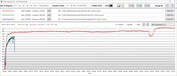 GPU jest znacznie mniej spójny i wykazuje krzywą fali wydajności. Częstotliwość taktowania osiąga cyklicznie powtarzające się maksimum na poziomie 2,5 GHz, a doliny krzywej wynoszą około 1,2 GHz. W tym samym czasie zmierzyliśmy bardzo spontaniczne spadki do zaledwie 200 MHz przez ułamki sekund w skądinąd stałym taktowaniu pamięci wynoszącym 2,3 GHz. Temperatura GPU również ulega wahaniom, ale wynosi średnio tylko 64 °C, a maksymalnie 76 °C. Pobór mocy waha się od 25 W do 90-100 W.