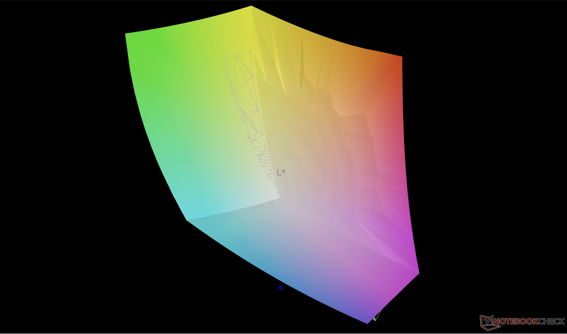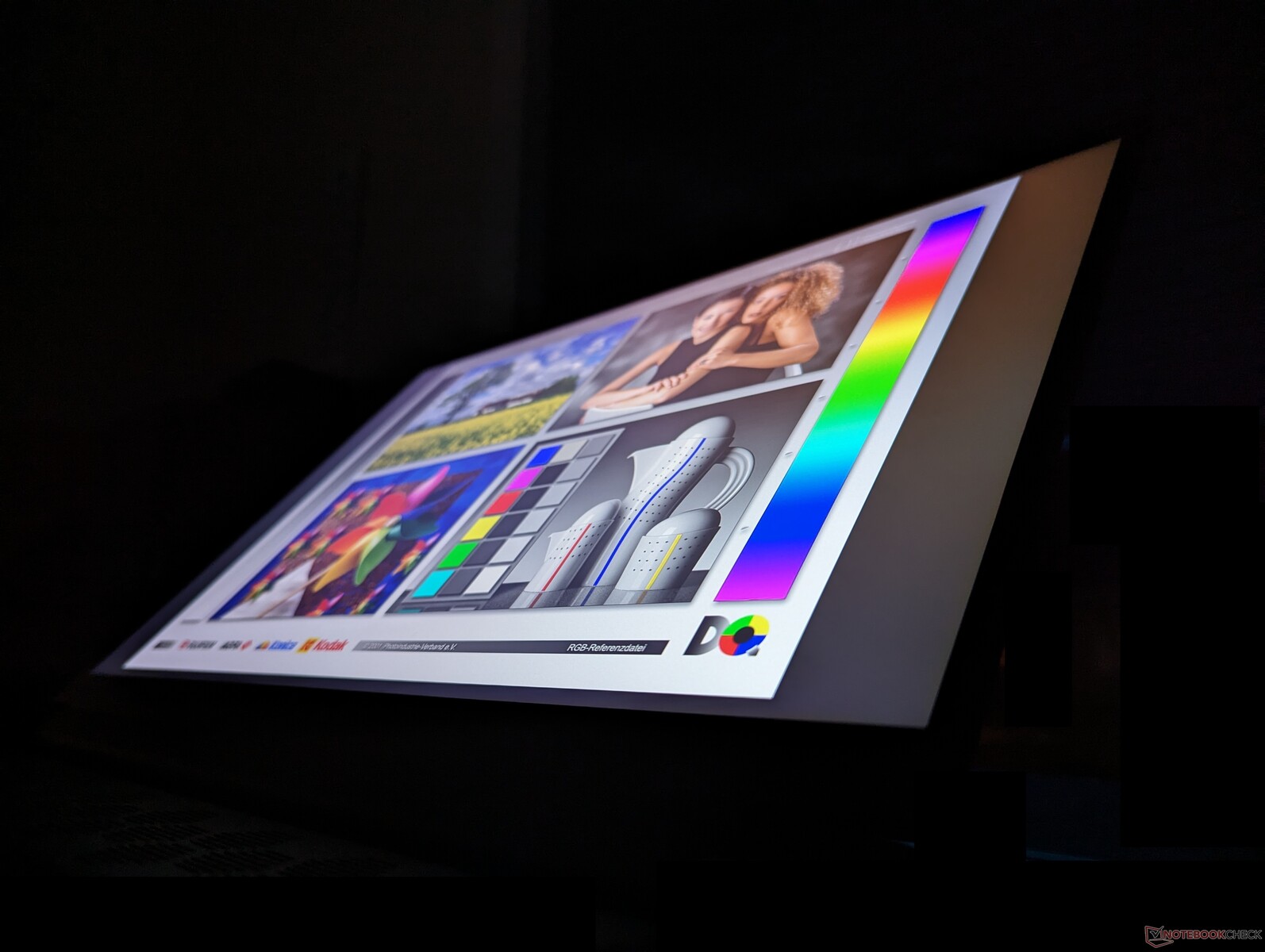 Skala szarości i kolory są dość dokładne po wyjęciu z pudełka, mimo że wyświetlacz nie jest wstępnie skalibrowany. Samodzielna kalibracja panelu poprawiłaby średnie wartości deltaE do <1, aby lepiej wykorzystać pełne kolory P3. Nasz skalibrowany profil ICM można pobrać bezpłatnie powyżej.