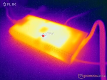 Temperatura powierzchni jest bardzo wysoka w tylnej części obudowy, podczas gdy przednia część jest zauważalnie chłodniejsza dla dłoni i palców. Seria Alienware x16 wykorzystuje więcej kratek wentylacyjnych niż seria m16 z konieczności, ponieważ konstrukcja x16 jest zdefiniowana przez jej cienkość.