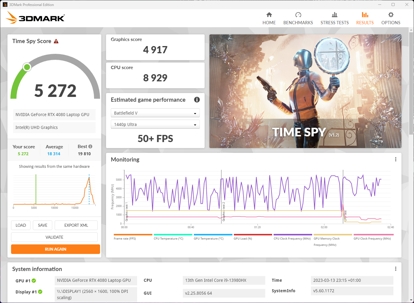 | 91.2 % v7 (old) | 02/2023 | Razer Blade 16 Early 2023 i9-13950HX, GeForce RTX 4080 Laptop GPU | 2.4 kg | 21.99 mm | 16.00" | 2560x1600 | |