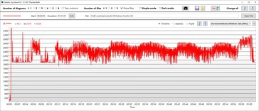 Szybkość grafiki waha się znacznie między 500 a 1600 MHz, a średnio wynosi 838 MHz. Prędkość pamięci masowej oscyluje wokół 1,4 GHz, a GPU nagrzewa się do około 70°C (158 °F ). Mierzymy pobór mocy na poziomie około 66 W.
