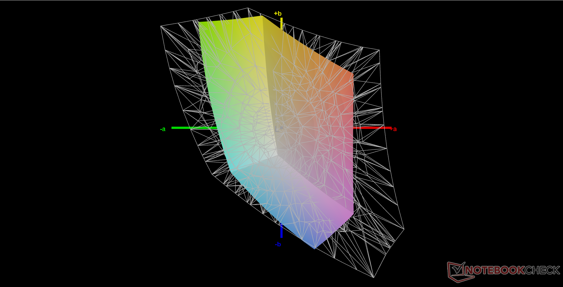 Wyświetlacz nie jest skalibrowany, a jego średnie wartości deltaE dla skali szarości i kolorów wynoszą odpowiednio 3,2 i 4,51. Samodzielna kalibracja wyświetlacza za pomocą kolorymetru X-Rite poprawiłaby te średnie wartości do zaledwie 0,3 i 1,82. Jednak kolory nadal stają się coraz bardziej niedokładne przy wyższych poziomach nasycenia ze względu na ograniczoną przestrzeń kolorów wspomnianą powyżej. Na przykład kolor niebieski cierpi z powodu bardzo wysokiego deltaE wynoszącego 20,94 nawet po kalibracji.