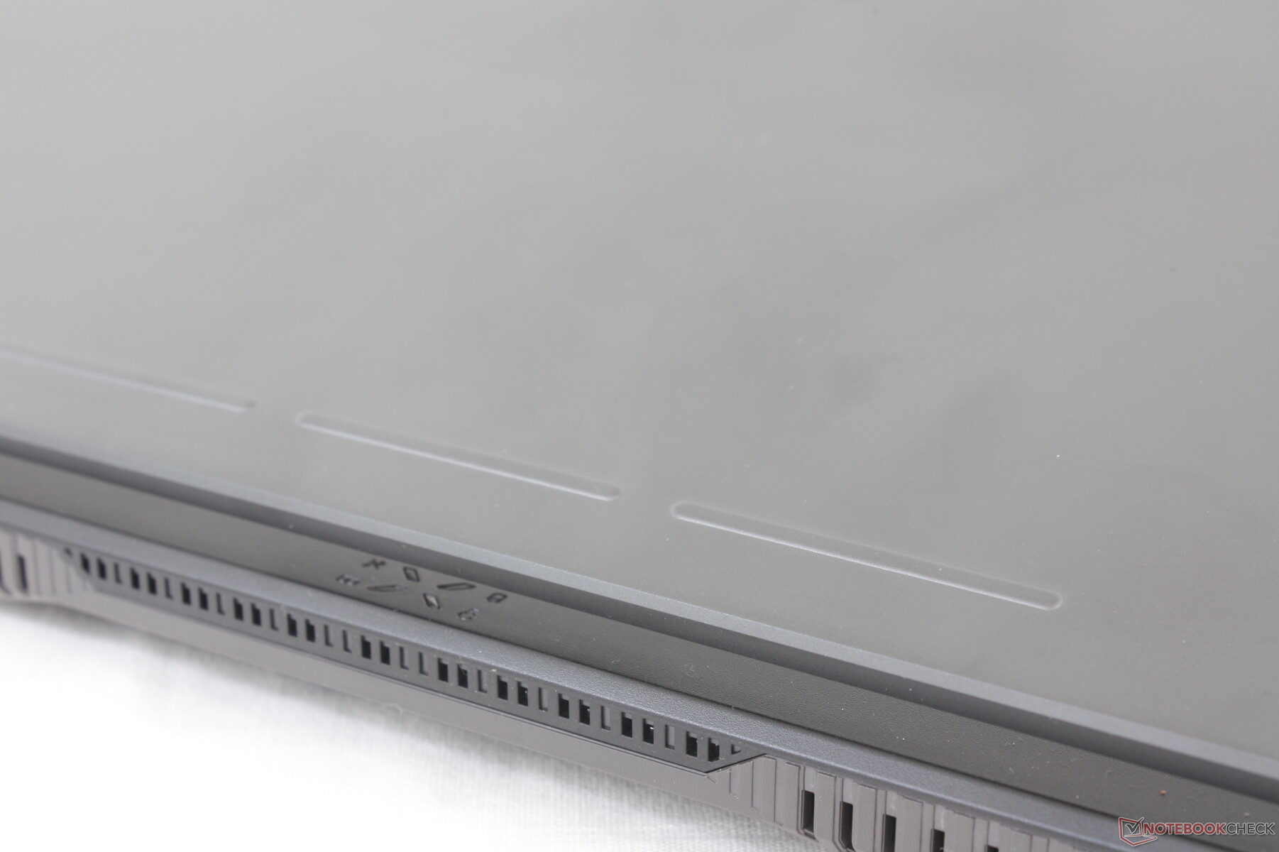 Obudowa jest w dużej mierze identyczna z TUF Gaming F17 FX707 włącznie z rozmieszczeniem portów oraz metalowymi i plastikowymi materiałami, z których wykonano odpowiednio zewnętrzną pokrywę i podstawę. Niemniej jednak, istnieją niewielkie powierzchowne różnice na zewnętrznej pokrywie, które pomagają wizualnie odróżnić TUF Gaming A17 od TUF Gaming F17. Na przykład narożne okręgi na F17 są teraz ukośnymi liniami. Istnieją również dodatkowe oznaczenia wzdłuż dolnej krawędzi pokrywy, podczas gdy są one całkowicie nieobecne w F17. Po odwróceniu do góry nogami, gumowy trójkąt na spodzie obudowy jest teraz pomarańczowy zamiast czerwonego.