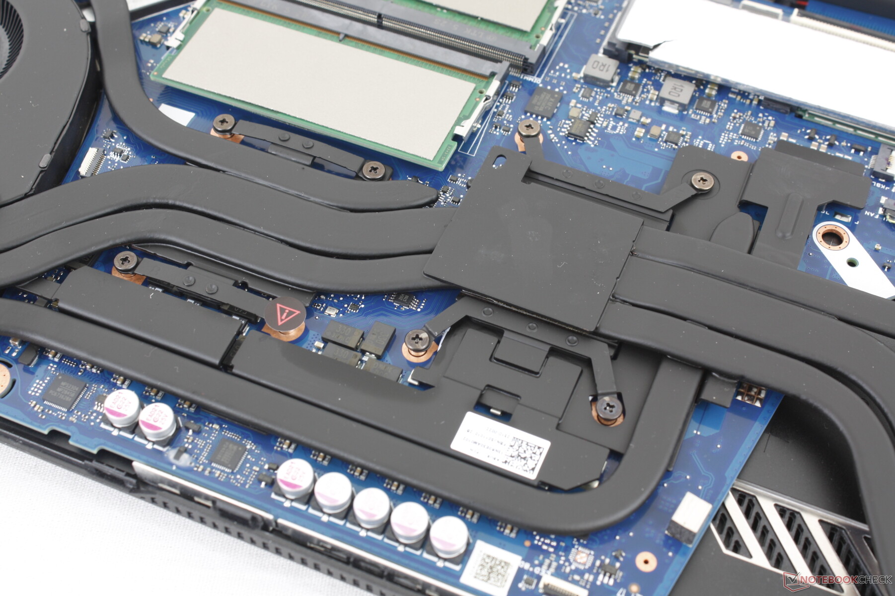 Dolny panel wyskakuje stosunkowo łatwo po odkręceniu 12 śrub krzyżakowych. Nie ma większych wewnętrznych różnic między wersjami Intel i AMD, więc użytkownicy nadal otrzymują dwa gniazda M.2 SSD i dwa gniazda SODIMM. Pamięć RAM jest ograniczona do 4800 MHz.