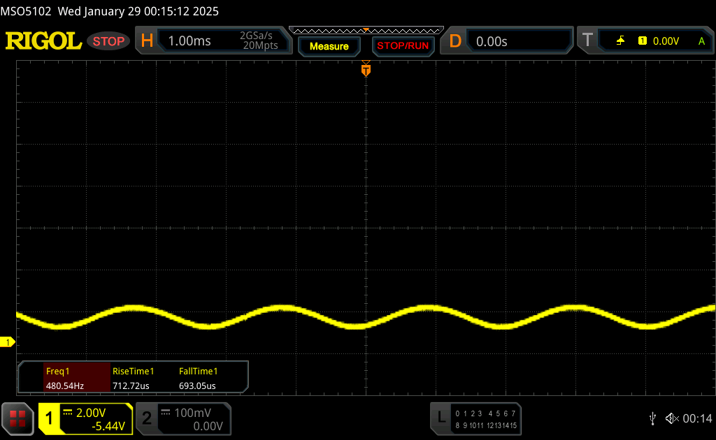 (+) | wzloty są liniowe (1.9% delta do poprzedniej częstotliwości)