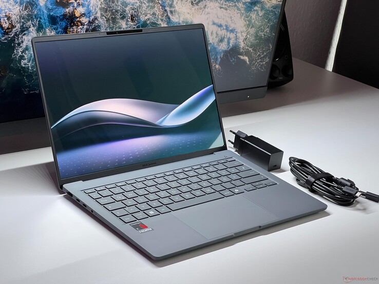 Magiczne słowo otaczające obudowę nowego Zenbooka A14 to Ceraluminum - połączenie ceramiki i aluminium - które znamy już z takich urządzeń jak Zenbook S 16. Podczas gdy tamten laptop używał Ceraluminum tylko do pokrywy, obudowa Zenbooka A14 jest teraz wykonana w całości z nowego materiału. Oprócz tego, że jest lżejszy, powinien być również bardziej wytrzymały i mniej podatny na zabrudzenia i ślady odcisków palców. Nasze urządzenie testowe, wyposażone w wariant kolorystyczny Iceland Gray (alternatywnie Zabriskie Beige), robi dobre wrażenie pod tym względem, ponieważ odciski palców są ledwo widoczne i można je bardzo łatwo zetrzeć.