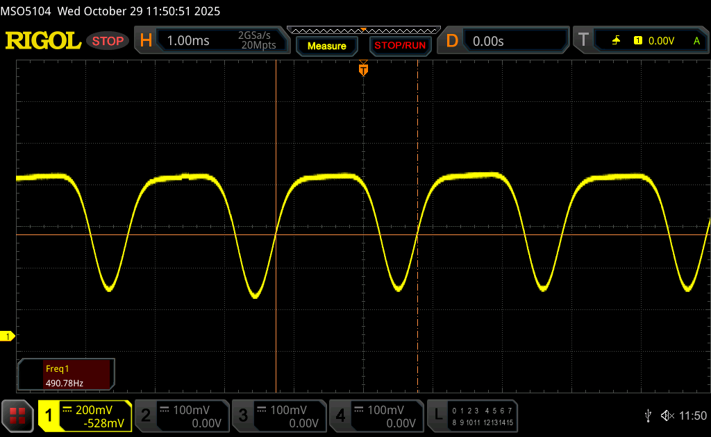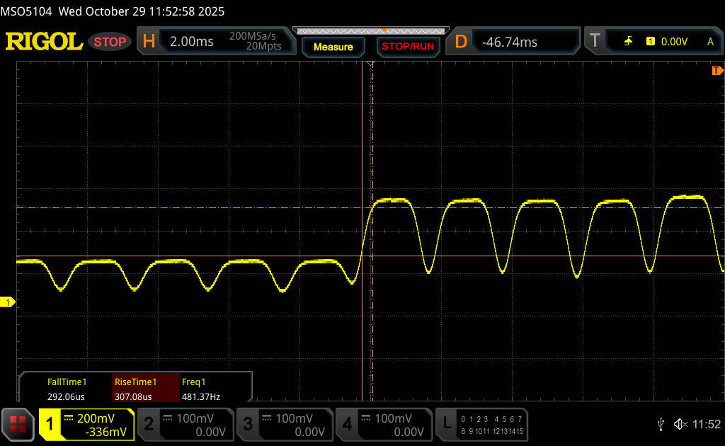 (+) | bas jest liniowy (4.2% delta do poprzedniej częstotliwości)