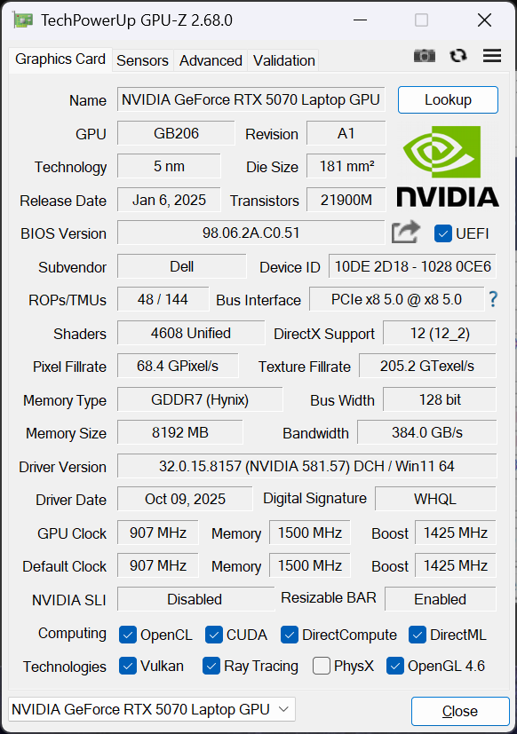 | Dell 16 Premium DA16250 Ultra 7 255H, GeForce RTX 5070 Laptop | Dell XPS 16 9640 Ultra 7 155H, GeForce RTX 4070 Laptop GPU | HP Spectre x360 16 RTX 4050 Ultra 7 155H, GeForce RTX 4050 Laptop GPU | Lenovo Yoga Pro 9i 16 RTX 5070 Ultra 9 285H, GeForce RTX 5070 Laptop | Asus Zenbook S 16 UM5606-RK333W Ryzen AI 9 HX 370, Radeon 890M | LG Gram Pro 16Z90TS-G.AU89G Core Ultra 7 256V, Arc 140V | |