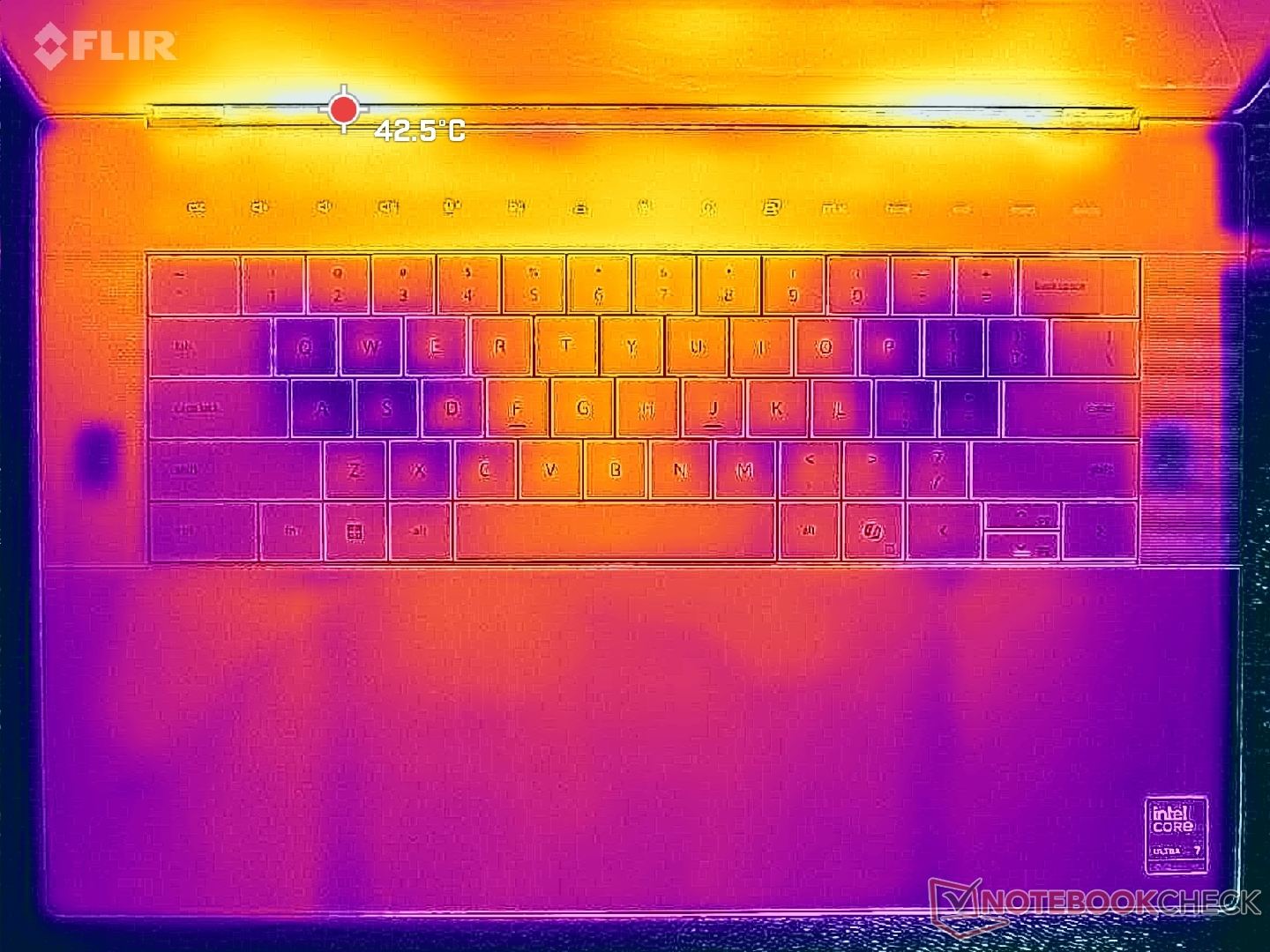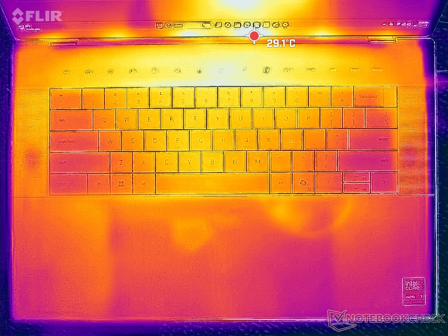 (+) Podpórki pod nadgarstki i touchpad są chłodniejsze niż temperatura skóry i maksymalnie 28.6 °C / 83.5 F i dlatego są chłodne w dotyku.
