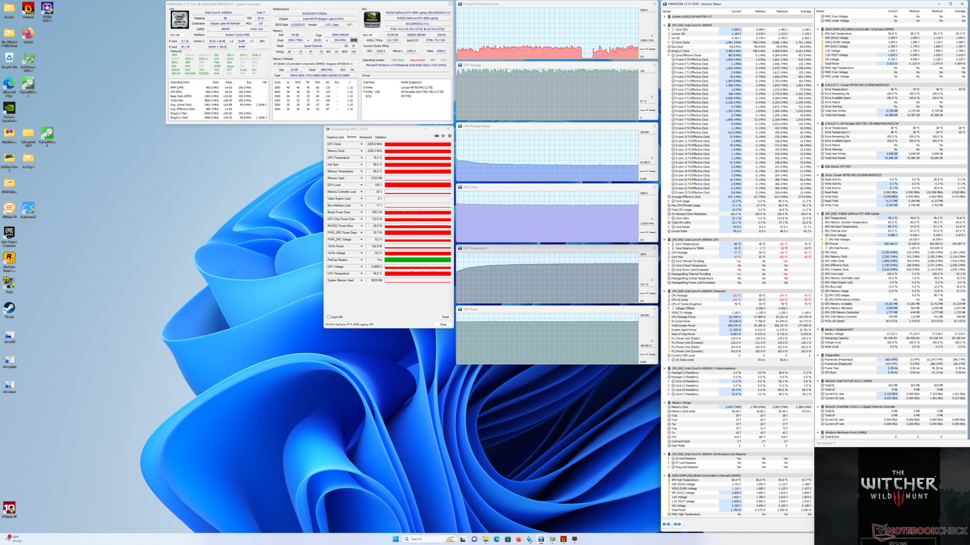Bieganie Witcher 3 wymaga nieco więcej mocy niż poprzednio, około 325 W, aby być prawie tak samo jak Titan 18 HX. Wyższe zużycie energii w porównaniu do naszego modelu 2023 można prawdopodobnie przypisać jaśniejszemu panelowi 4K o wyższej rozdzielczości w naszej nowszej konfiguracji.