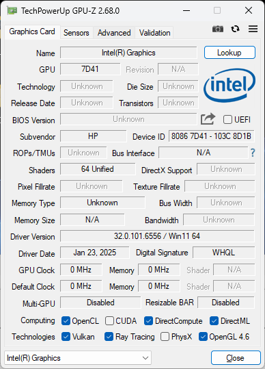 | HP 17t-cn500 Ultra 7 255U, Graphics 4-Core iGPU (Arrow Lake), TeamGroup T-Force G50 TM8FFE004T, IPS, 1920x1080, 17.3" | HP 17-ca1149ng R5 3500U, Vega 8, Intel SSD 660p SSDPEKNW512G8, IPS, 1920x1080, 17.3" | LG gram 17 2025 (17Z90TL) Core Ultra 7 258V, Arc 140V, , IPS, 2560x1600, 17" | Lenovo V17 G4 IRU U300, UHD Graphics Xe G4 48EUs, WD PC SN740 512GB SDDPMQD-512G-1101, IPS, 1920x1080, 17.3" | Lenovo IdeaPad Slim 5 16AKP10 Ryzen AI 5 330, Radeon 820M, Western Digital PC SN5000S SDEPMSJ-512G, IPS, 1920x1200, 16" | Asus Vivobook S16 S3607QA SD X1-26-100, Adreno X1-45 1.7 TFLOPS, Micron 2500 MTFDKBA512QGN, IPS, 2560x1600, 16" | |