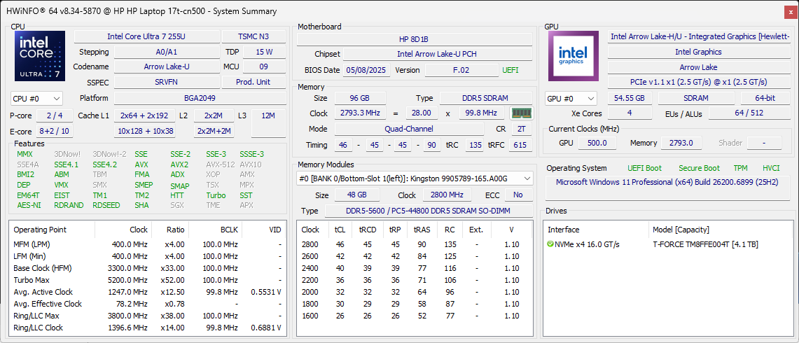 HP 17t działa w tym samym zakresie mocy 45 W, co HP 17 z 2020 roku, ale ze znacznie szybszą wydajnością, co znacznie poprawia wydajność w przeliczeniu na wat. Na przykład oba systemy pobierają około 40 W każdy podczas grania, mimo że 17t może działać od 80 do 150 procent szybciej w zależności od tytułu.