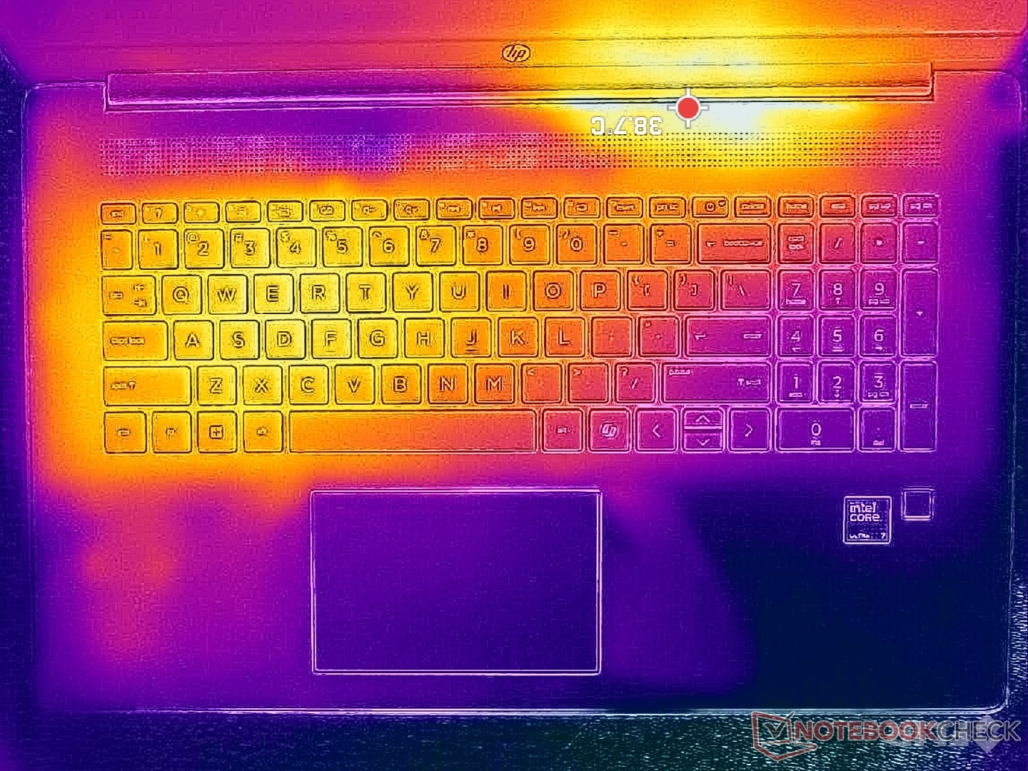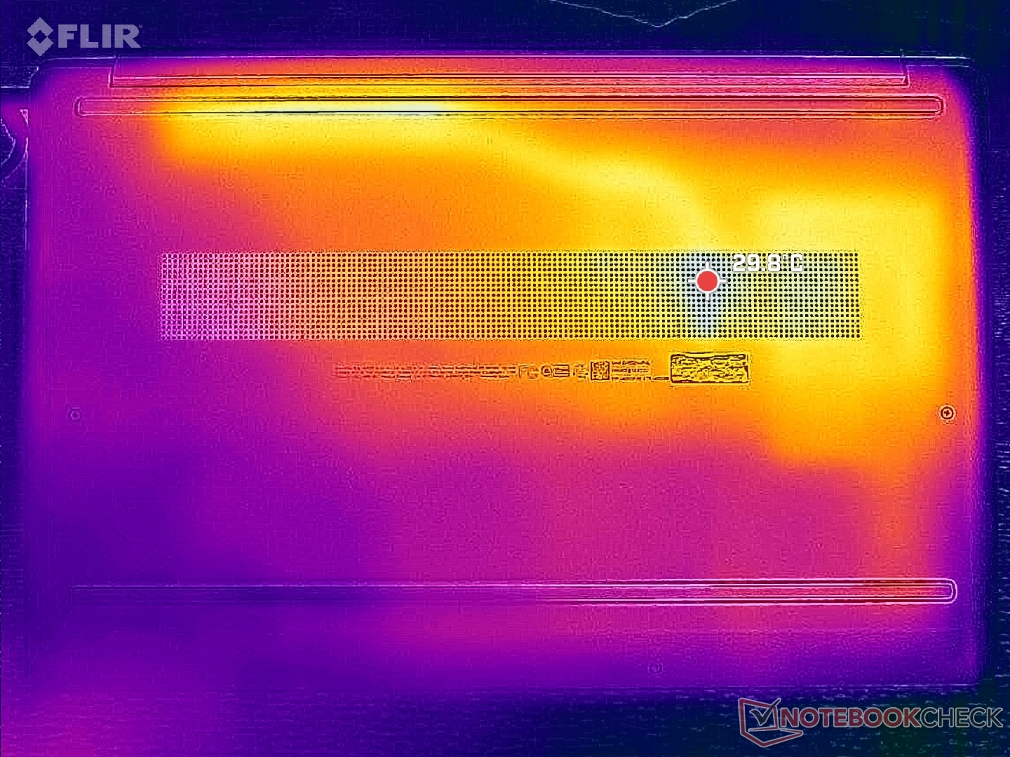 (+) Podpórki pod nadgarstki i touchpad są chłodniejsze niż temperatura skóry i maksymalnie 27.4 °C / 81.3 F i dlatego są chłodne w dotyku.