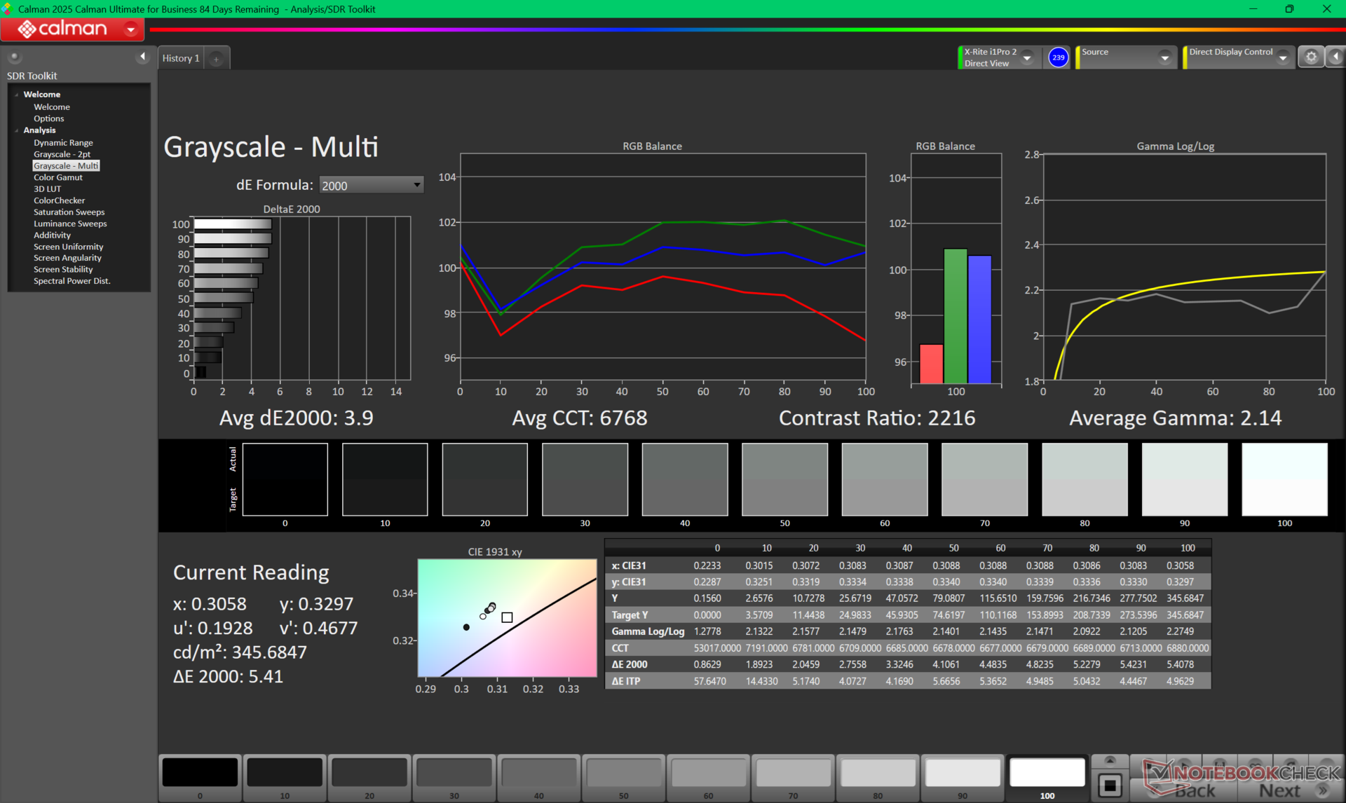 ΔE Greyscale Calman: 3.9 | ∀{0.09-98 Ø5}