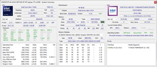 | HP 17t-cn500 Intel Core Ultra 7 255U ⎘ Intel Graphics 4-Core iGPU (Arrow Lake) ⎘ 96 GB Pamięć, 4000 GB SSD | Amazon: $899.00 Cena katalogowa: 1150 USD | 2.1 kg | 19.8 mm | 17.30" 1920x1080 127 PPI IPS | |