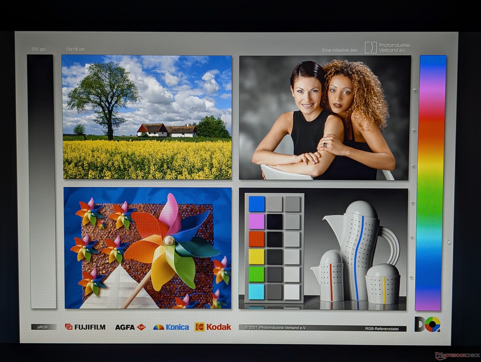 Panel IPS Chi Mei jest tak prosty, jak to tylko możliwe, z ograniczonym pokryciem sRGB i zarówno średnią jasnością, jak i czasem reakcji czerni i bieli. Jego współczynnik kontrastu jest zaskakująco dobry jak na niedrogiego laptopa i wynosi około 1500:1, ale umiarkowane krwawienie podświetlenia i wąska przestrzeń kolorów są poza tym wystarczające do podstawowych zastosowań multimedialnych.