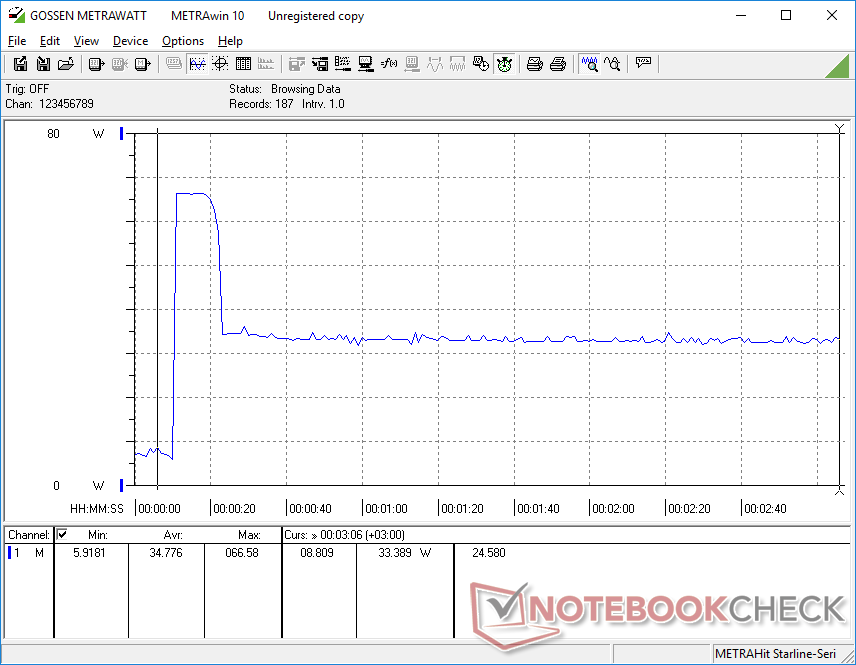 Praca na zasilaniu bateryjnym nieznacznie obniża wydajność procesora. Test 3DMark 11 na baterii zwróciłby wyniki fizyki i grafiki odpowiednio 10619 i 5959 punktów, w porównaniu do 11465 i 5780 punktów przy zasilaniu sieciowym.