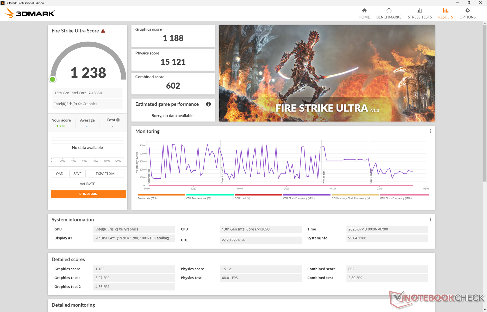Surowa wydajność wielowątkowa jest do 20 procent wyższa niż w przypadku procesorów 12. generacji Core i7-1265U w zeszłorocznym Dragonfly G3. Po ustabilizowaniu się Turbo Boost, przewaga w wydajności pomiędzy i7-1365U i i7-1265U zmniejsza się do zaledwie 10 procent, co pokazują poniższe wyniki testu pętli CineBench R15 xT. Nowy procesor jest ogólnie uważany za niewielkie odświeżenie lub rebranding zeszłorocznych opcji Alder Lake-U.