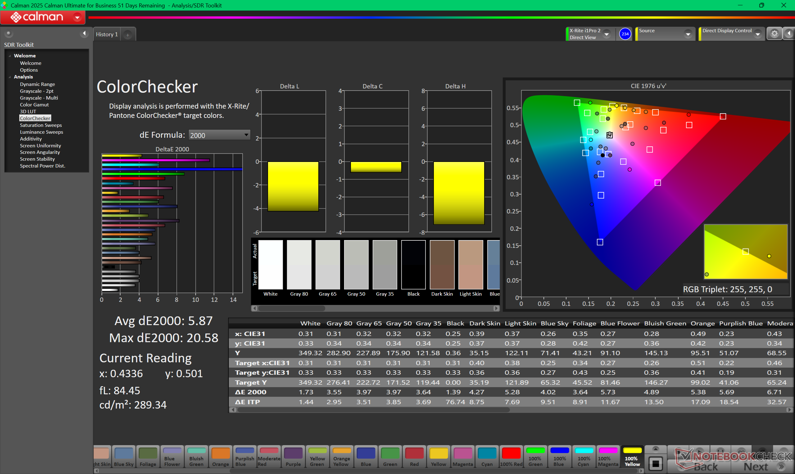 ΔE ColorChecker Calman: 5.87 | ∀{0.5-29.43 Ø4.78}