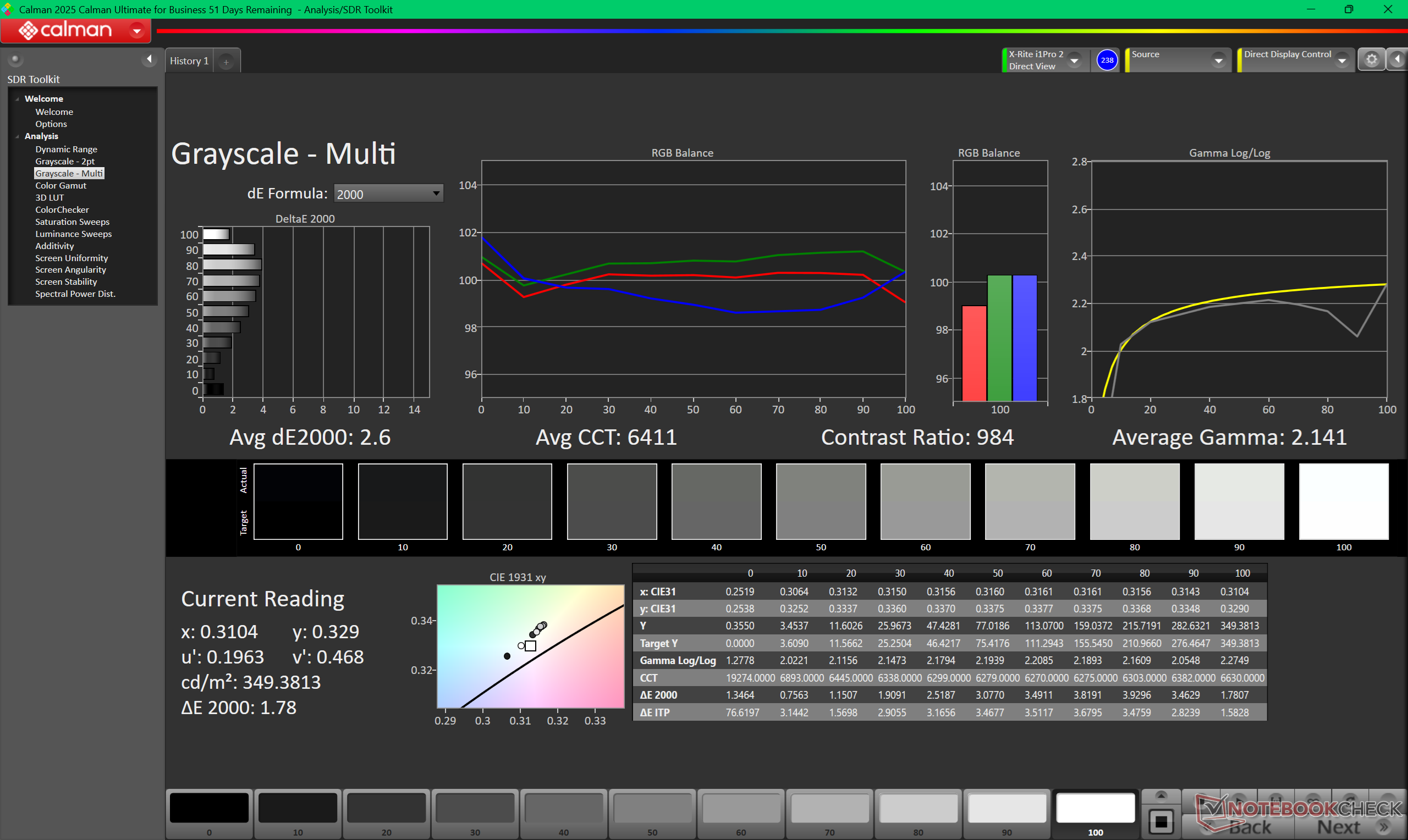ΔE Greyscale Calman: 2.6 | ∀{0.09-98 Ø5}