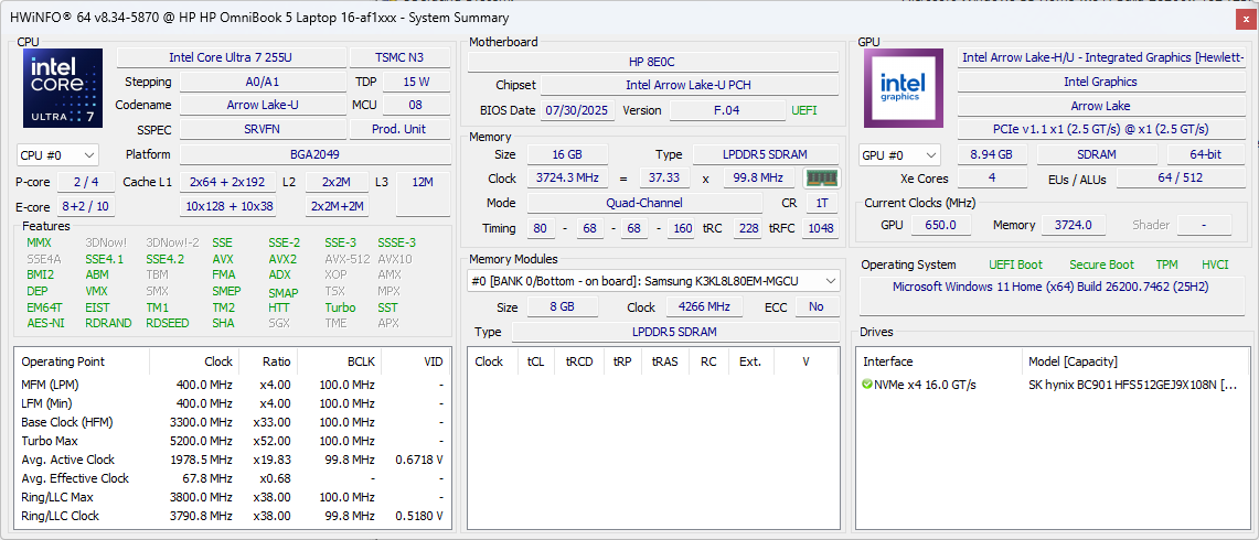 OmniBook 5 16 to budżetowy laptop podobny do serii Pavilion. Najnowszy model wyposażony jest w nowoczesny procesor Arrow Lake-U, ale nie posiada oddzielnej grafiki ani wymyślnych funkcji wyświetlania, aby utrzymać niskie koszty.