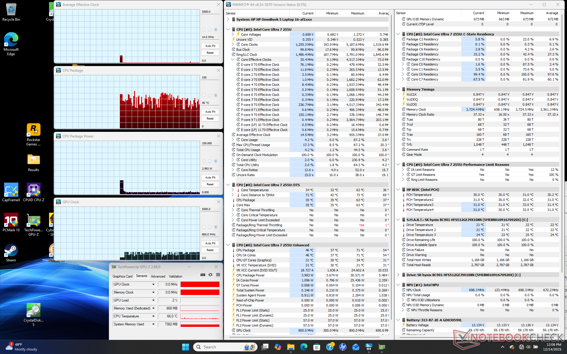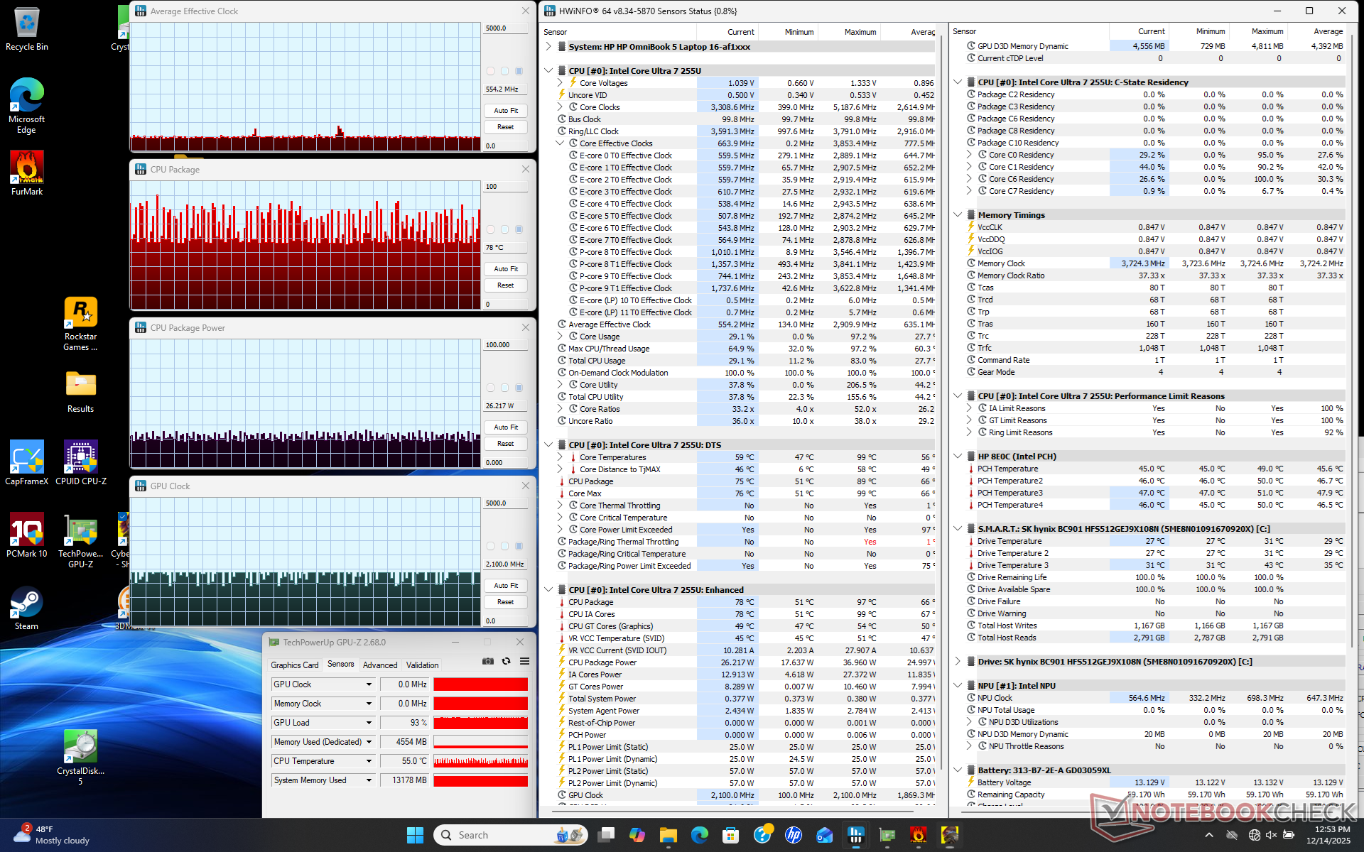 | HP Omnibook 5 16-af1037nr Ultra 7 255U, Graphics 4-Core iGPU (Arrow Lake), , IPS, 1920x1200, 16" | Lenovo IdeaPad Slim 5 16AKP10 Ryzen AI 5 330, Radeon 820M, Western Digital PC SN5000S SDEPMSJ-512G, IPS, 1920x1200, 16" | Dell 16 Plus Core Ultra 7 256V, Arc 140V, Samsung BM9C1 1024GB, IPS, 2560x1600, 16" | Asus Vivobook 16 M1606K Ryzen AI 7 350, Radeon 860M, Micron 2500 1TB MTFDKBA1T0QGN, IPS, 1920x1200, 16" | HP Pavilion 16-ag0057ng R5 8540U, Radeon 740M, SK hynix BC901 HFS001TEJ4X164N, IPS, 1920x1200, 16" | Acer Aspire 16 A16-51GM-77G2 Core 7 150U, GeForce RTX 2050 Mobile, WD PC SN740 SDDQNQD-1T00-1014, IPS, 1920x1200, 16" | |