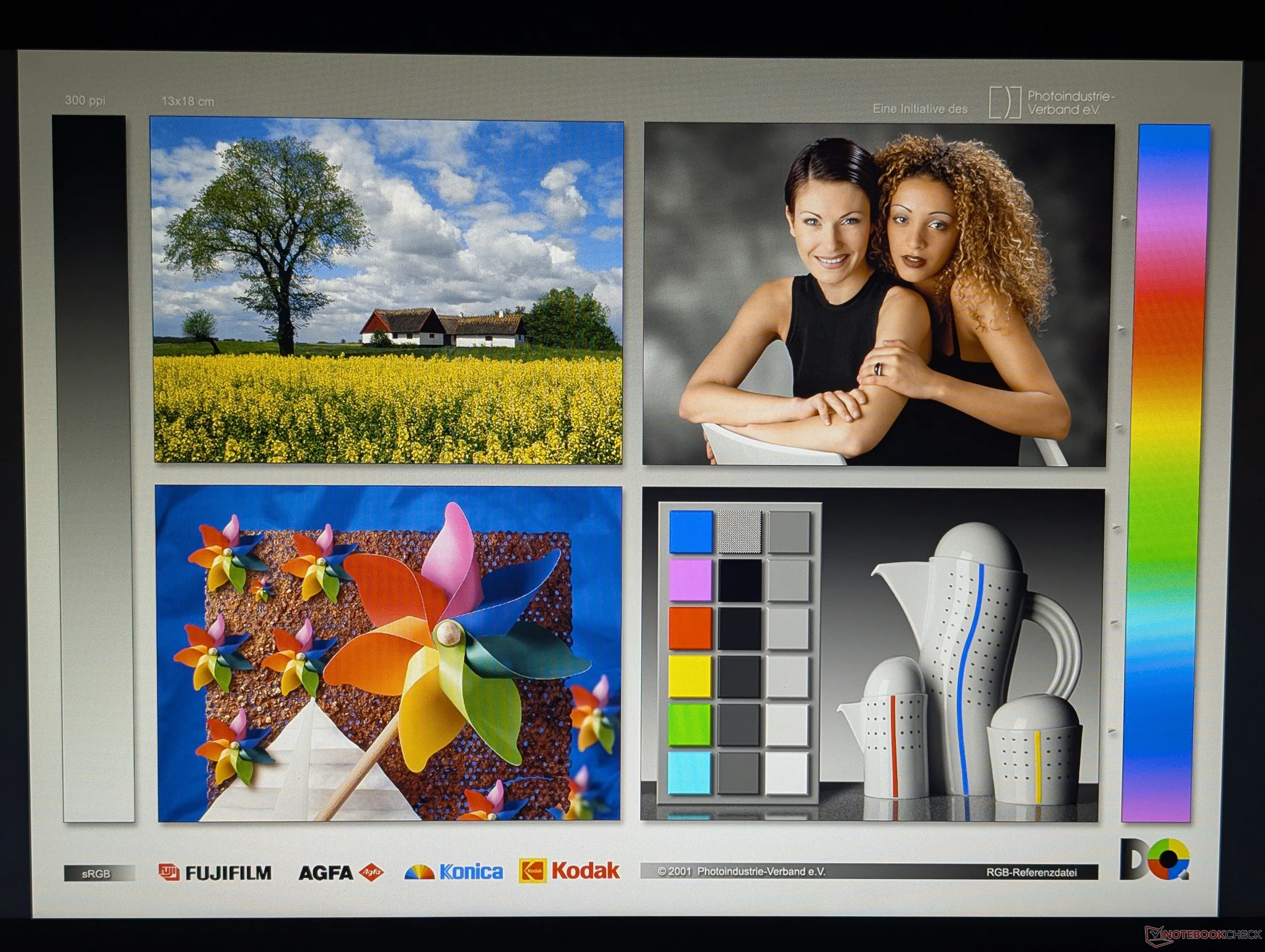 Wyświetlacz nie jest fabrycznie skalibrowany, ale średnie wartości deltaE są niższe niż oczekiwano i wynoszą zaledwie 2,6 i 5,87 odpowiednio dla skali szarości i kolorów. Użytkownicy mogą zastosować nasz skalibrowany profil ICM powyżej, aby uzyskać lepszą dokładność sRGB.