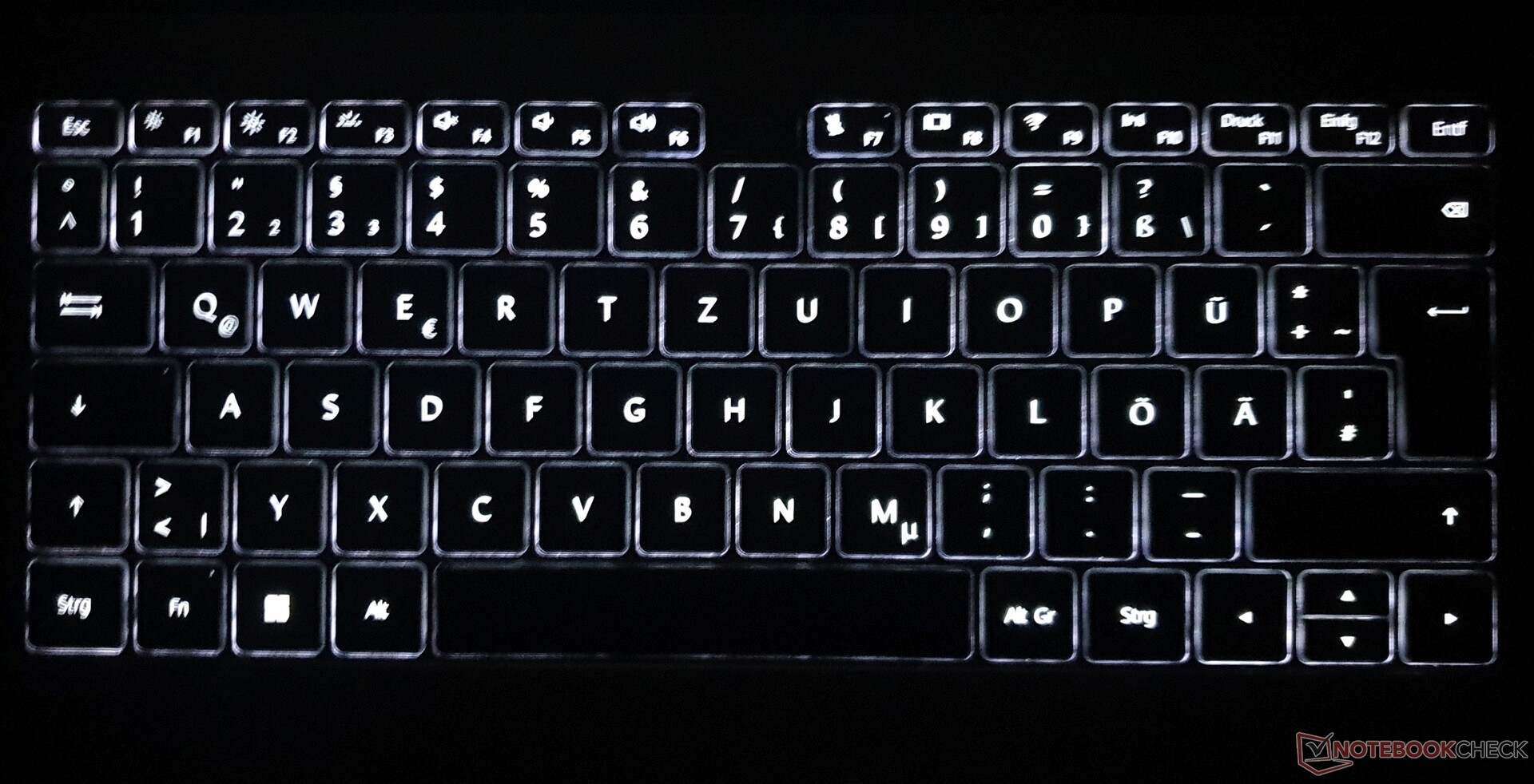 W przeciwieństwie do MateBooka D 15 klawisze nie są chropowate, lecz gładkie, co często zdarza się w przypadku podświetlenia klawiszy. Skok klawiszy nie jest zbyt krótki, a pisanie jest przyjemne, gdyż punkt nacisku jest wyraźnie wyczuwalny. Choć skok klawiszy jest miękki, opór może być dla niektórych nieco zbyt mały.
